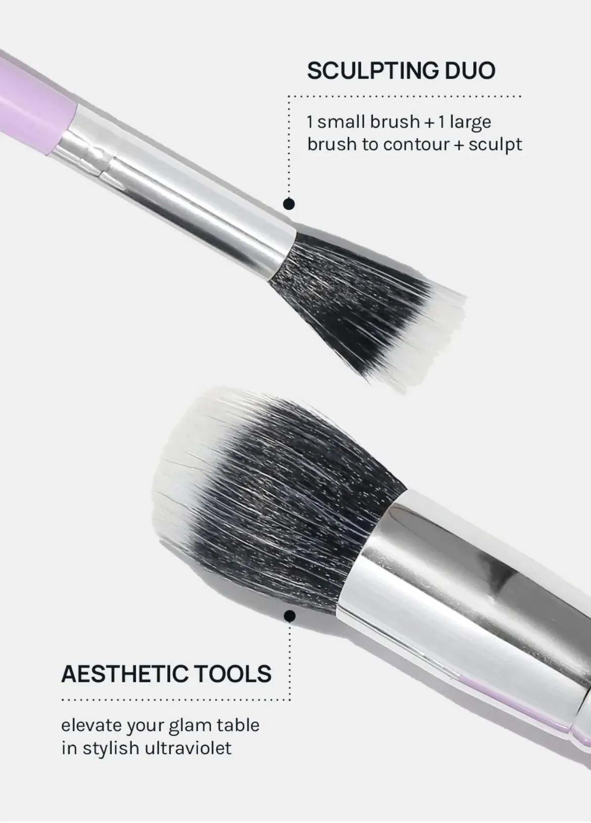 ¡Nuestros pinceles más vendidos, ahora en UltraViolet! Este conjunto dúo incluye un cepillo de punteado grande F6 y un cepillo de punteado pequeño E106.