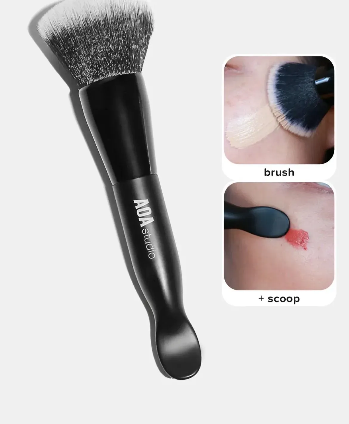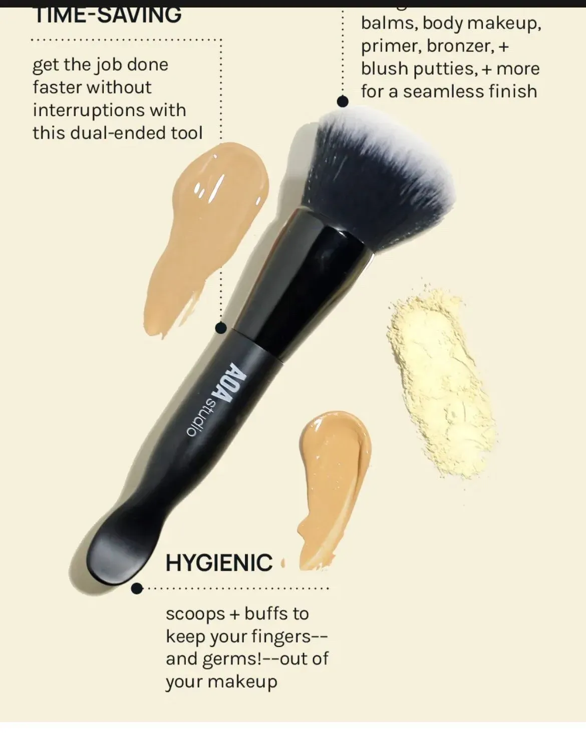 Aplicar + pulir la masilla de imprimación, + bálsamos de maquillaje: Este cepillo de pulido 2-n-1 + cuchara está diseñado para recoger + pulir productos.
