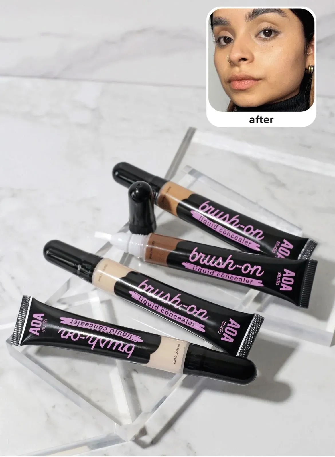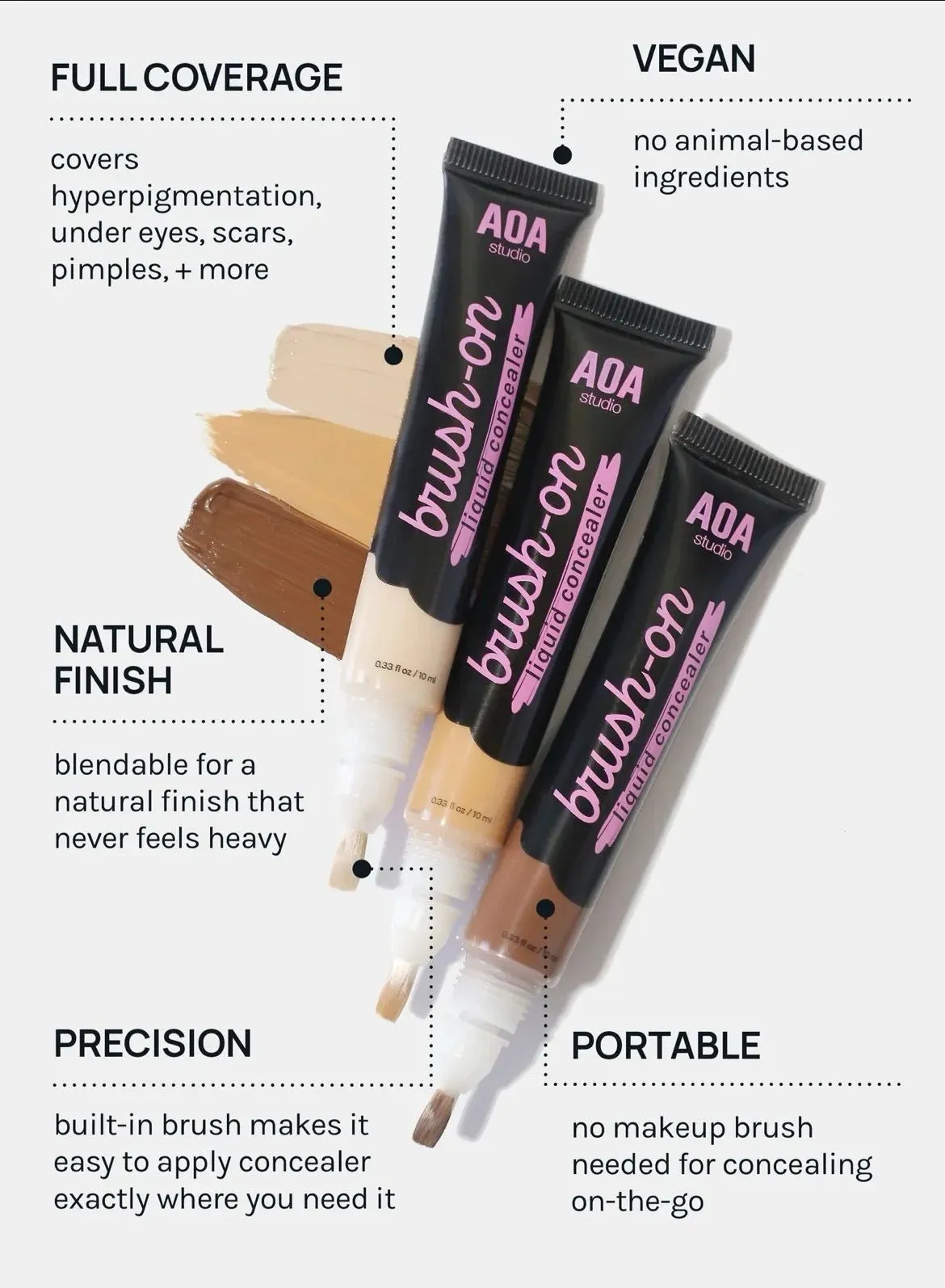 AOA Brush-On Liquid Concealer es un corrector mezclable con un cepillo incorporado para ofrecer una cobertura natural y no pastelera exactamente donde lo desea.
