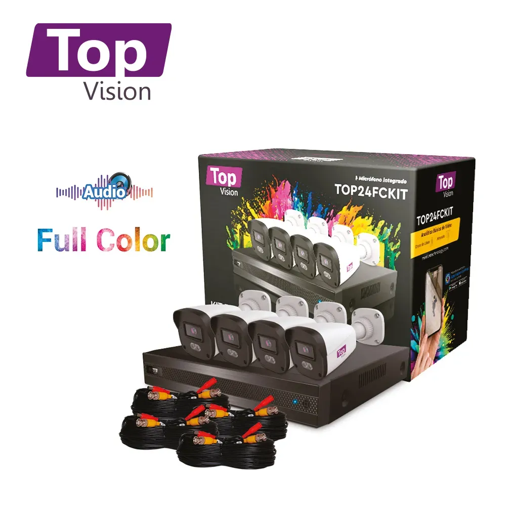 KIT 4X4 TOP24FCKIT TOPVISON INCLUYE 1 DVR XVR-204A 6CH 1080P-LITE SOPORTA AUDIO SOBRE COAXIAL O UTP 4 CÁMARAS HD TOPVISION BULLET TBFC200A 2MP 2.8MM TECNOLOGÍA FULL COLOR / MICRÓFONO INTEGRADO / CARCASA METÁLICA
