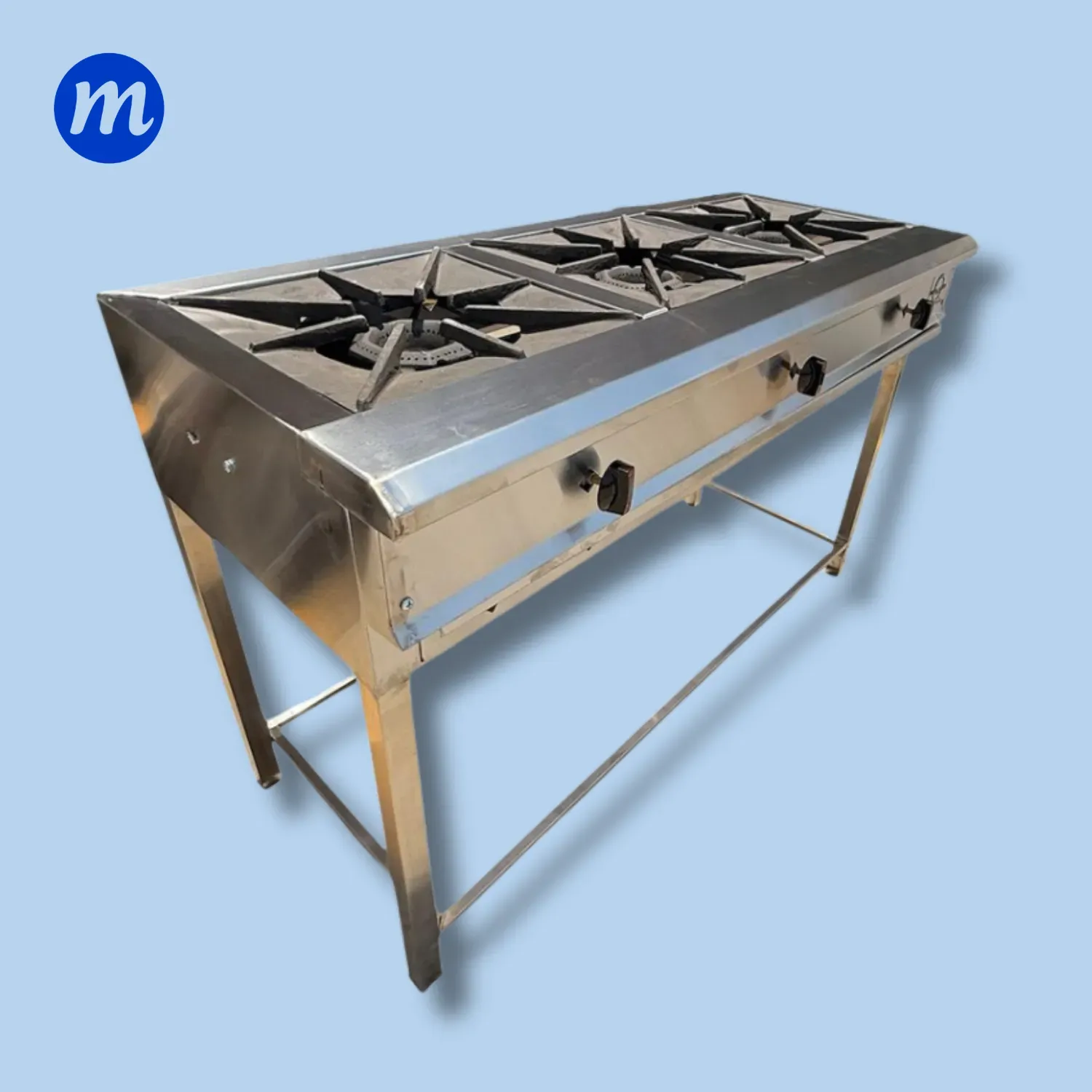 COCINA 3 HORNILLAS LINEAL TOTALMENTE EN ACERO QUEMADOR Q30 METAL ACERO
