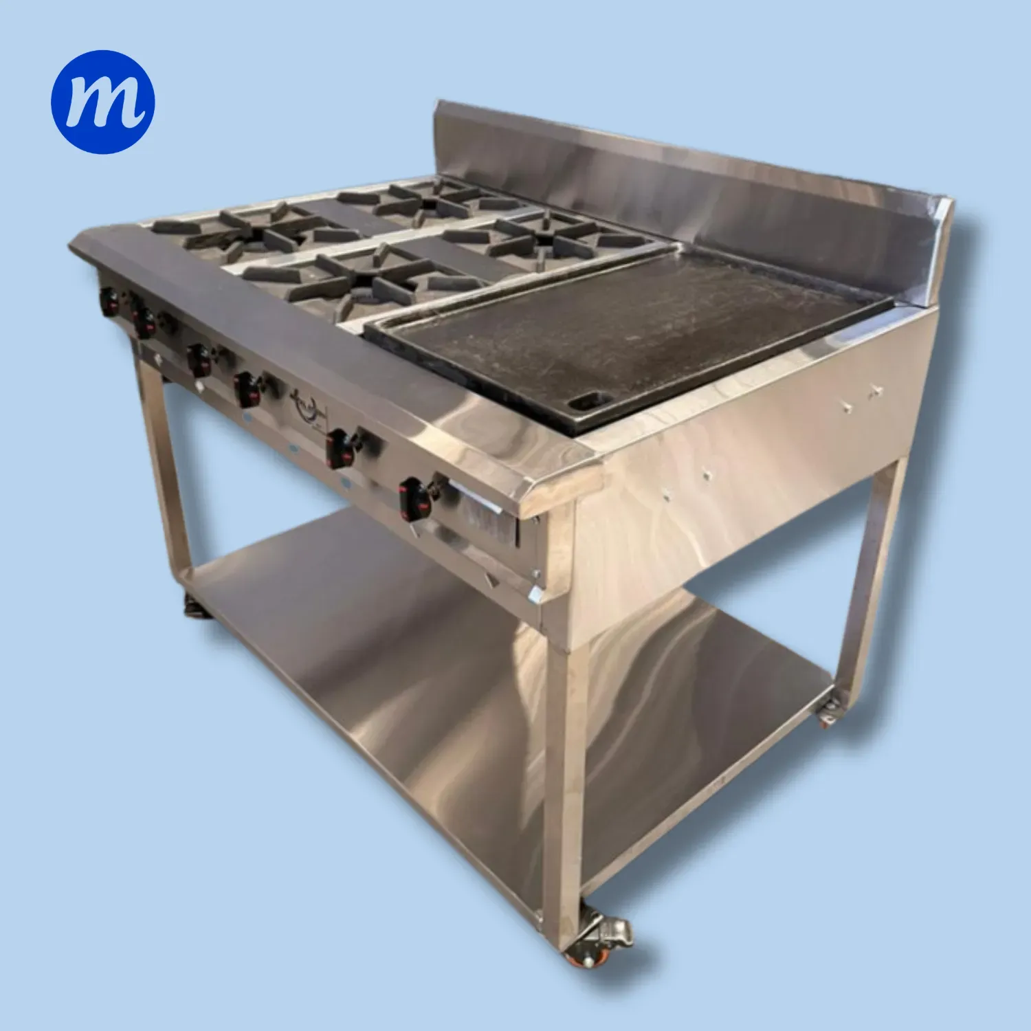 ➡️Modelo: 4 Hornillas y plancha en acero.