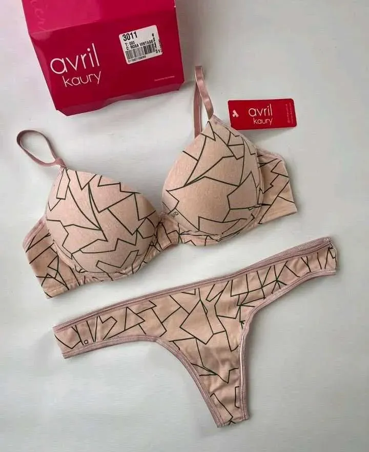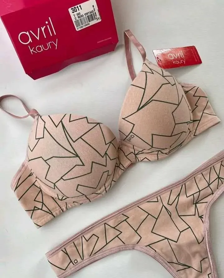 Conjunto de algodón Lines. Corpiño taza soft con push up y cola less.