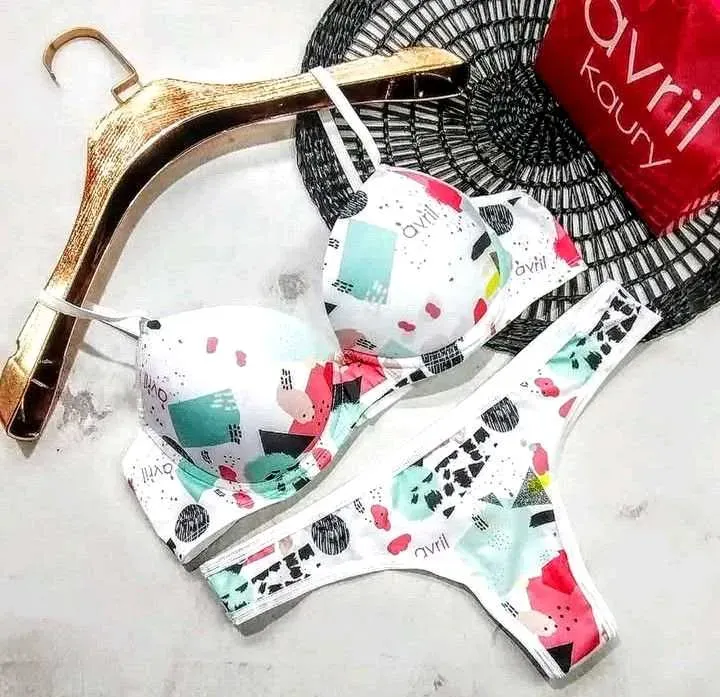 Conjunto de microfibra sublimada. Corpiño taza soft con push up y cola less.