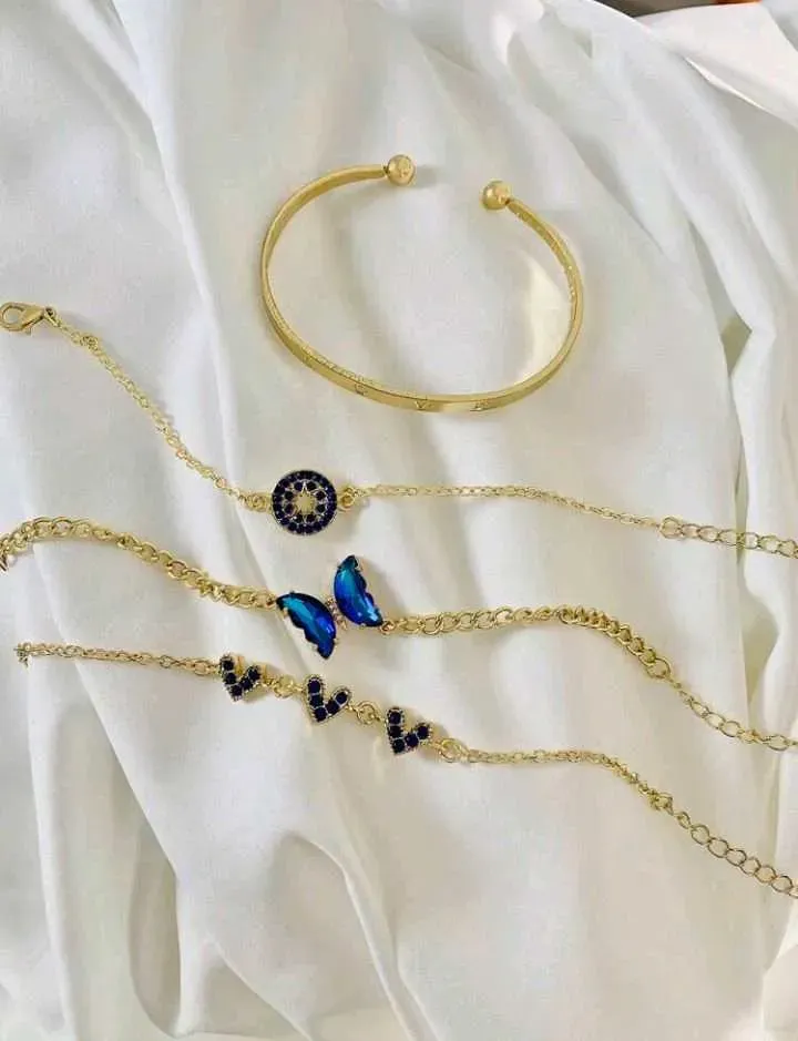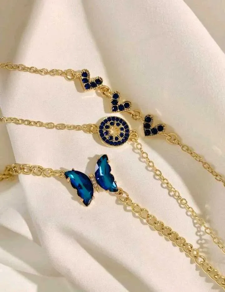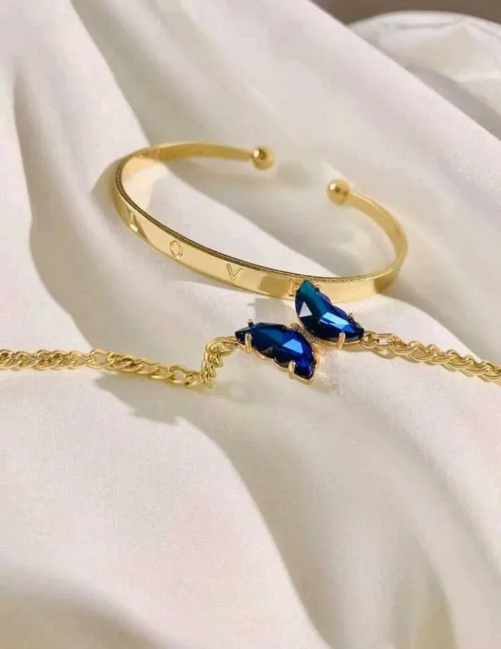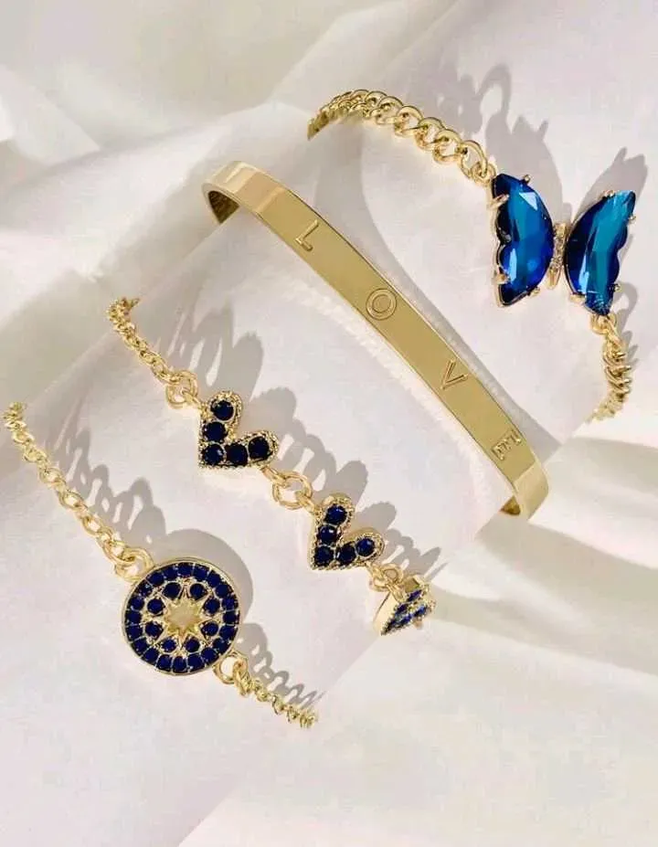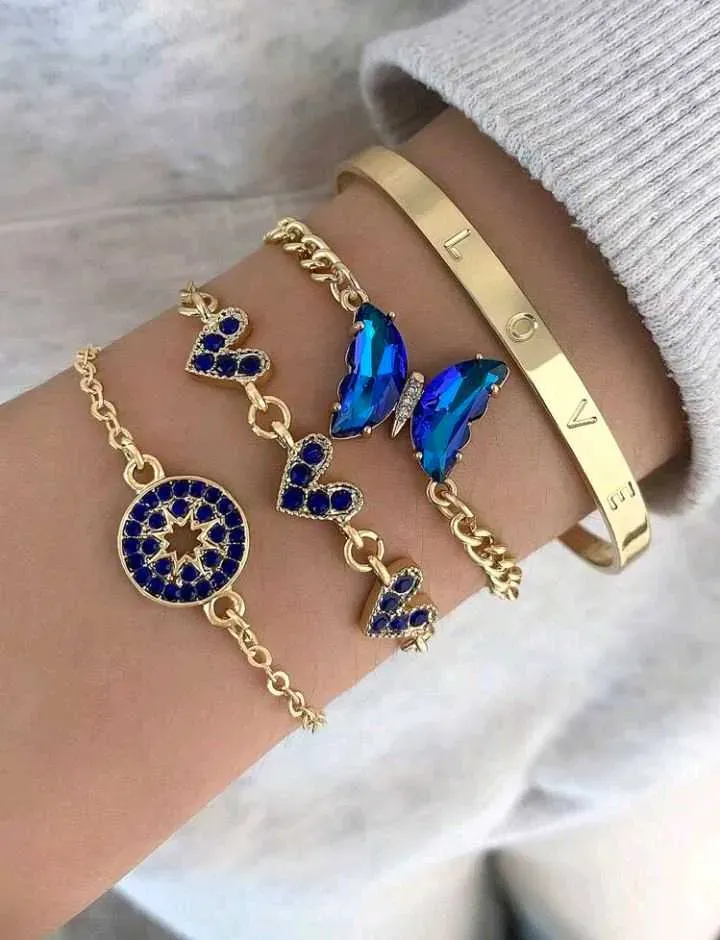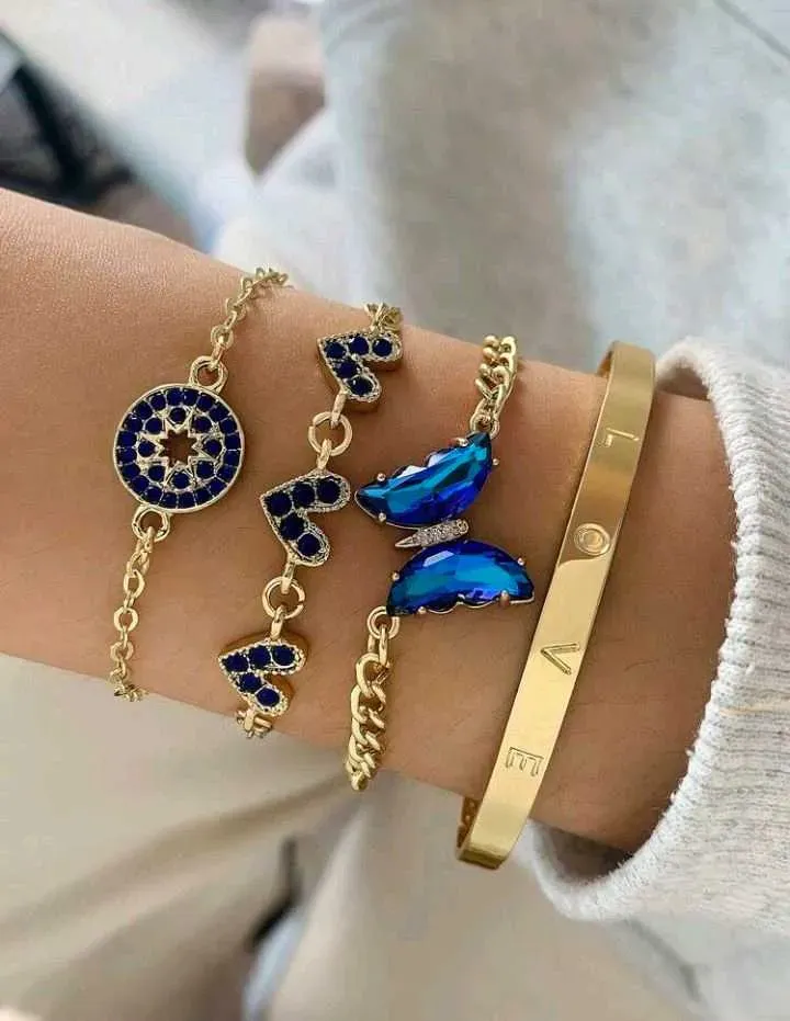 Art 03_ Brazaletes con detalles de mariposa, corazón y letra en resina sintética de estilo retro