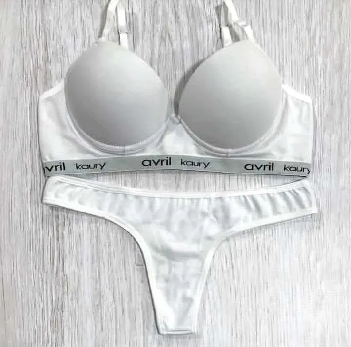 Conjunto de algodón con elástico personalizado. Corpiño taza soft con push up y cola less.