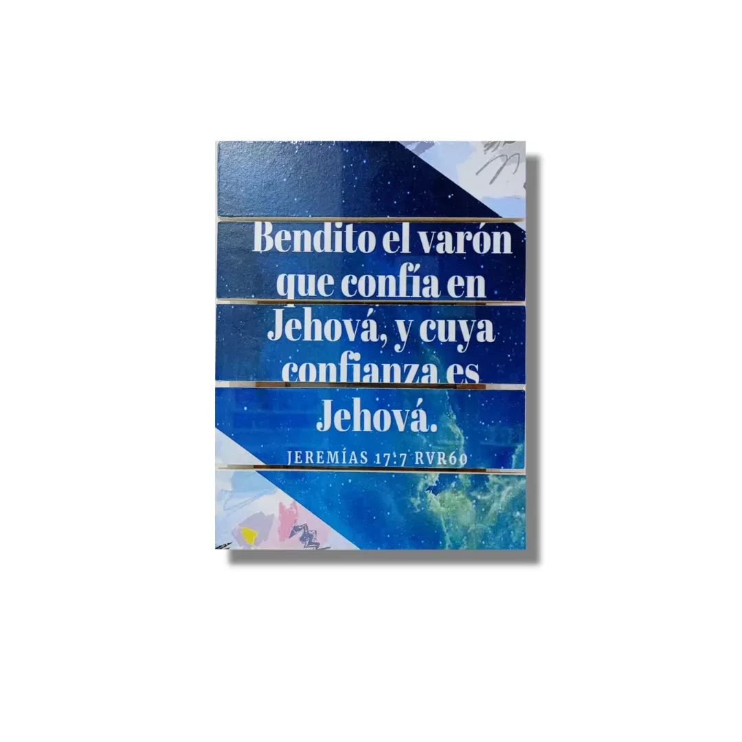 Este cuadro de madera está compuesto por tres tablas de 19Cm x 24Cm el cuadro, cada una con una inspiradora frase cristiana que llenará tu espacio con paz y esperanza.