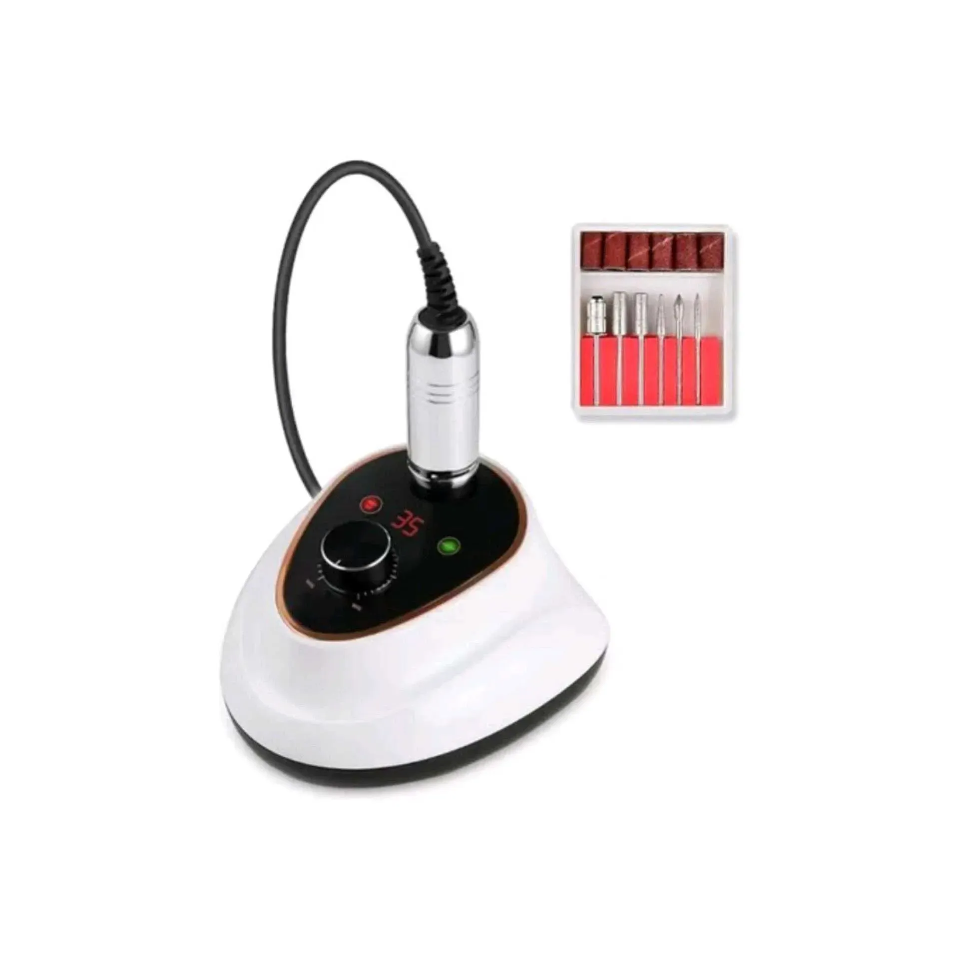 Este pulidor de manicura está diseñado para manicuristas profesionales y amantes del arte de las uñas. su función principal es recortar las uñas o pulir las uñas sin aceite. Para facilitar su uso, se ha diseñado un dispositivo de suspensión del mango.