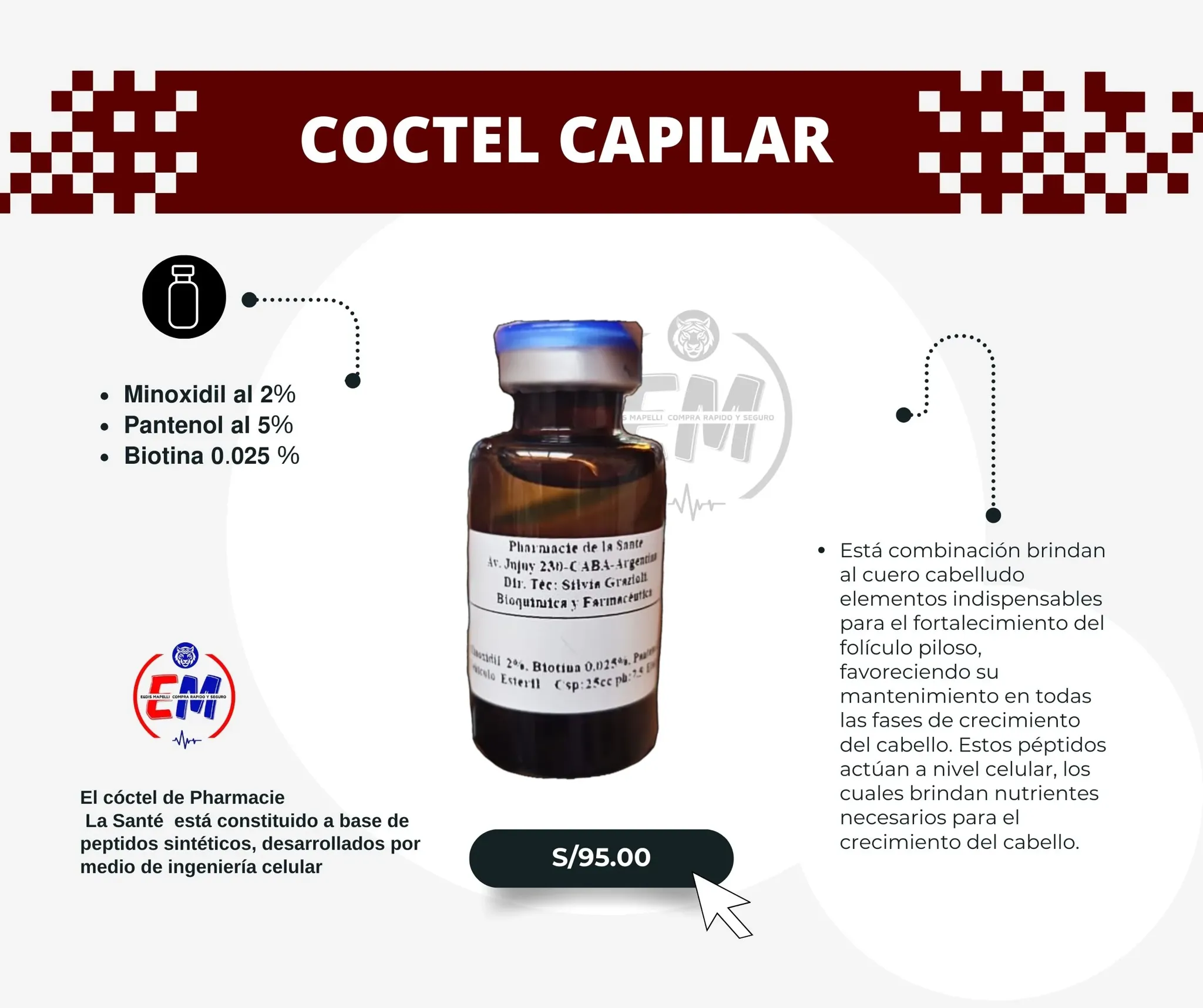 Está combinación brindan al cuero cabelludo elementos indispensables para el fortalecimiento del folículo piloso, favoreciendo su mantenimiento en todas las fases de crecimiento del cabello. Estos péptidos actúan a nivel celular, los cuales brindan nutrientes necesarios para el crecimiento del cabel...