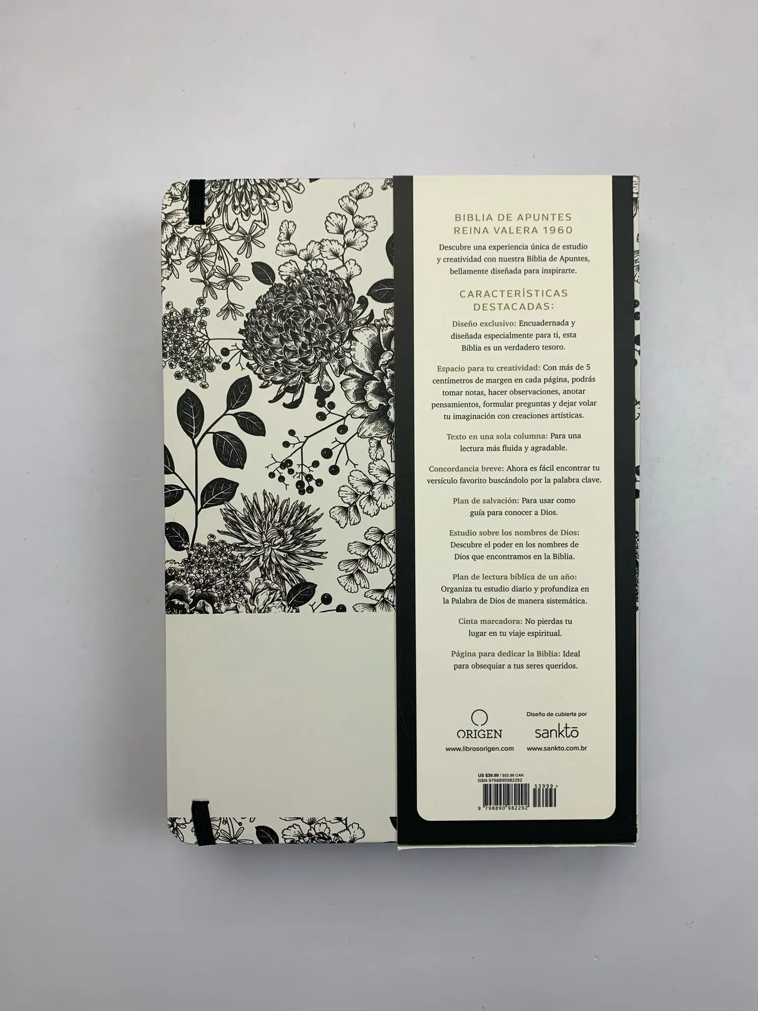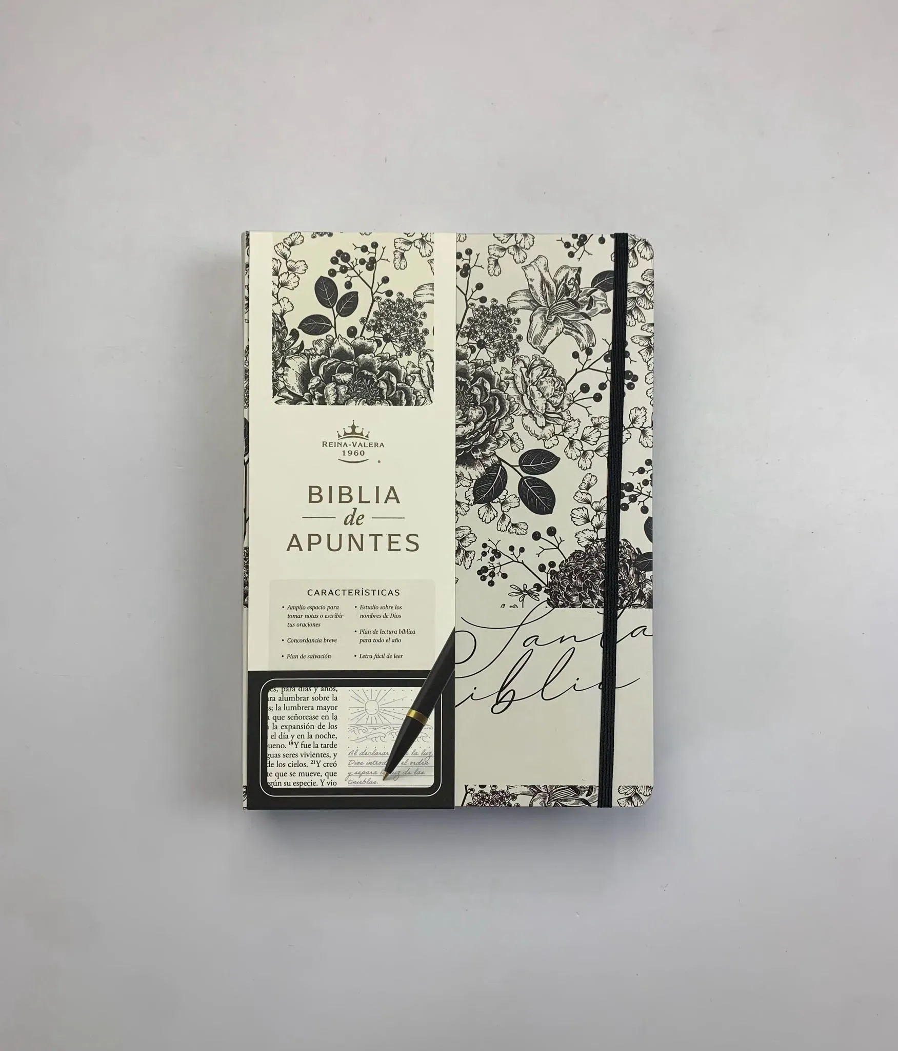 Biblia de Apuntes RVR 1960 Tapa dura, Blanco y negro con flores - Reina Valera Revisada 1960 - ISBN: 9798890982292