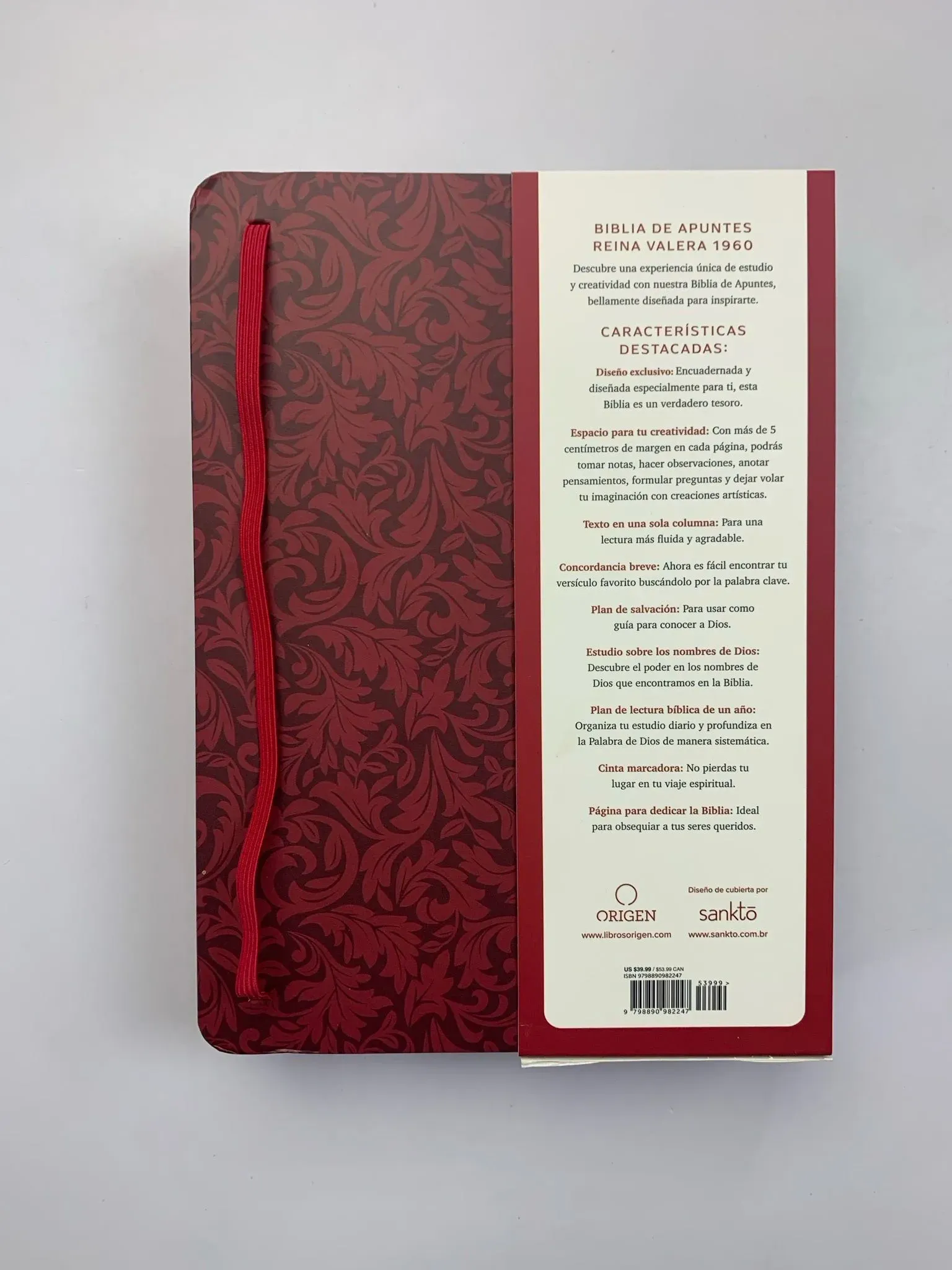 Biblia de Apuntes RVR 1960 Tapa dura, Vino tinto - Reina Valera Revisada 1960 - ISBN: 9798890982247