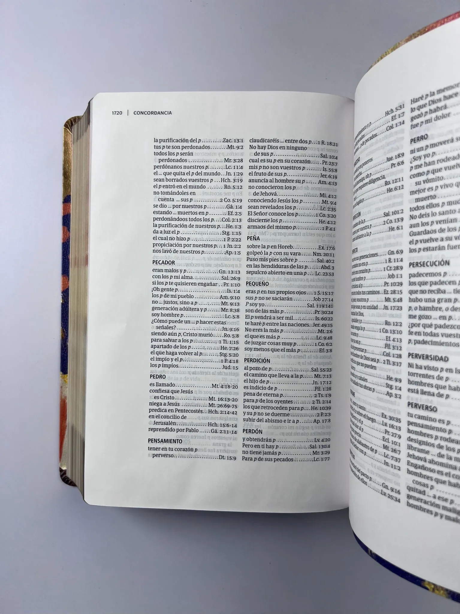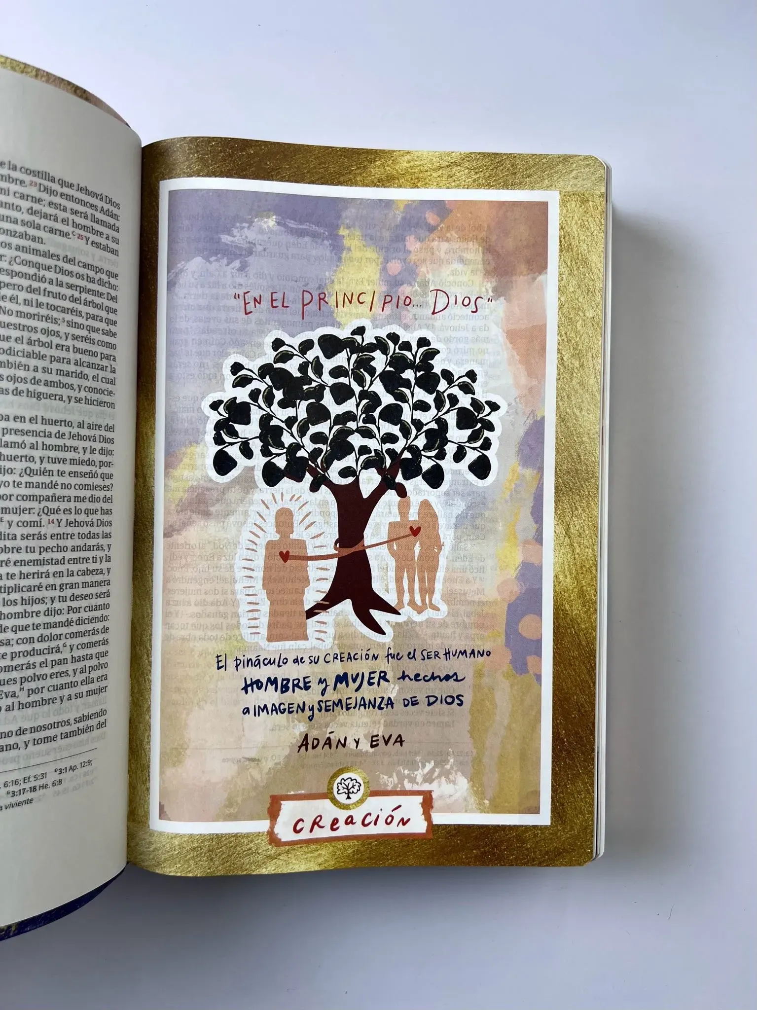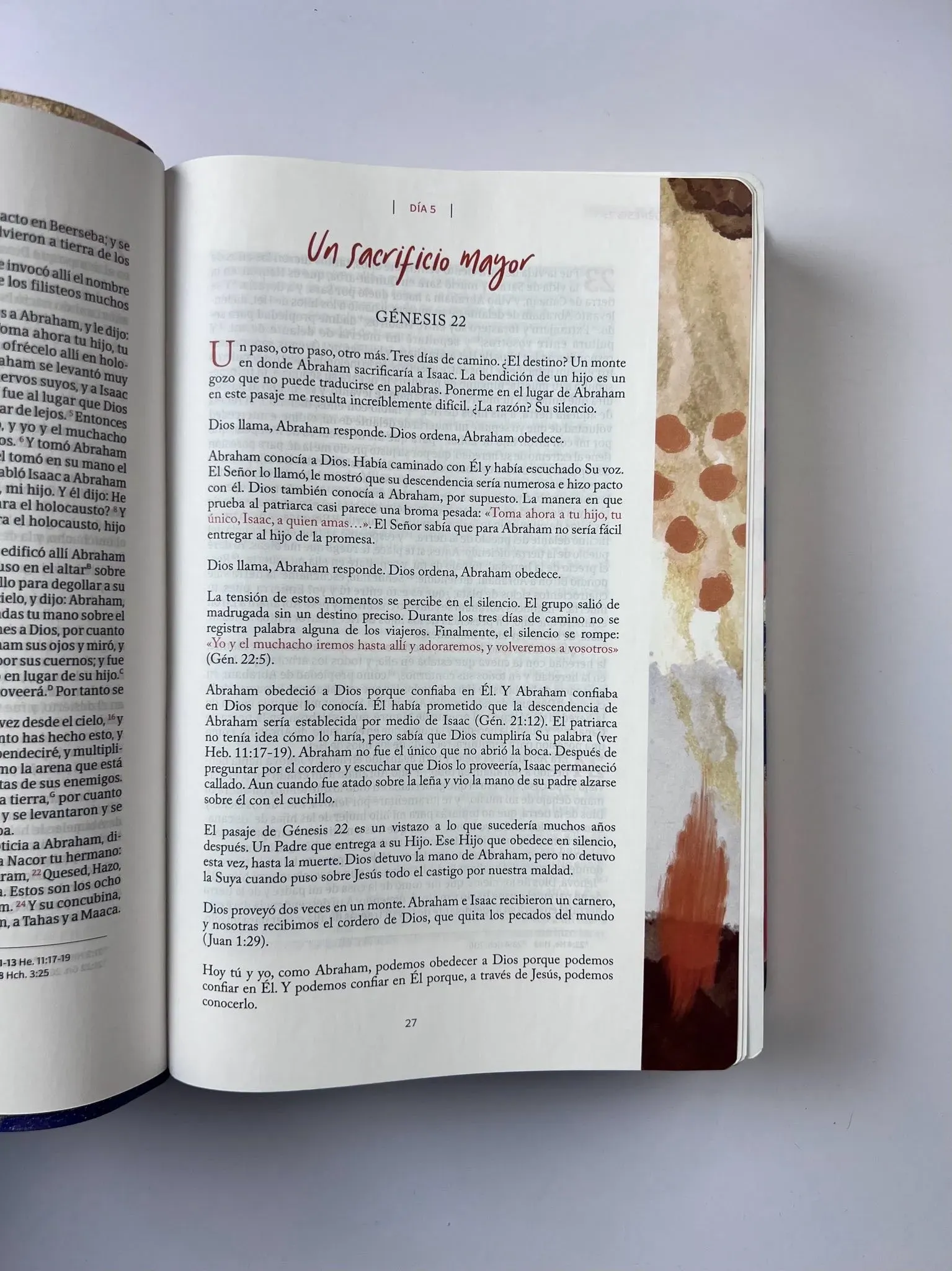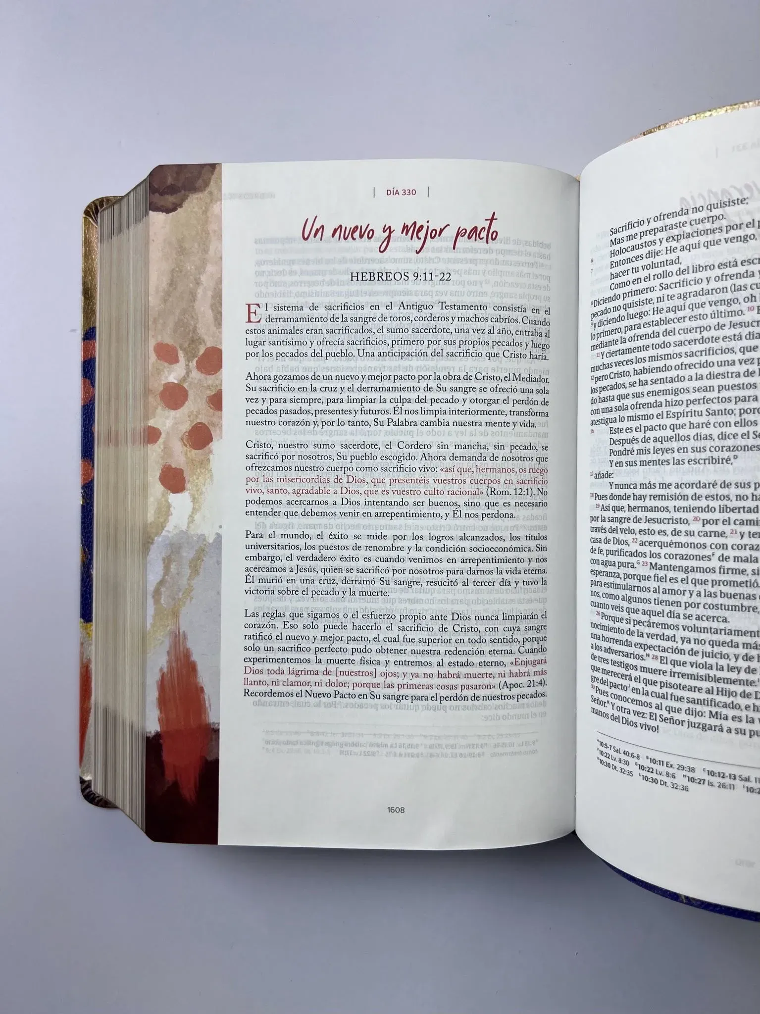 Biblia Devocional Centrada en Cristo, con plan de lectura, 365 devocionales, coloridas ilustraciones, concordancia y cinta marcadora.