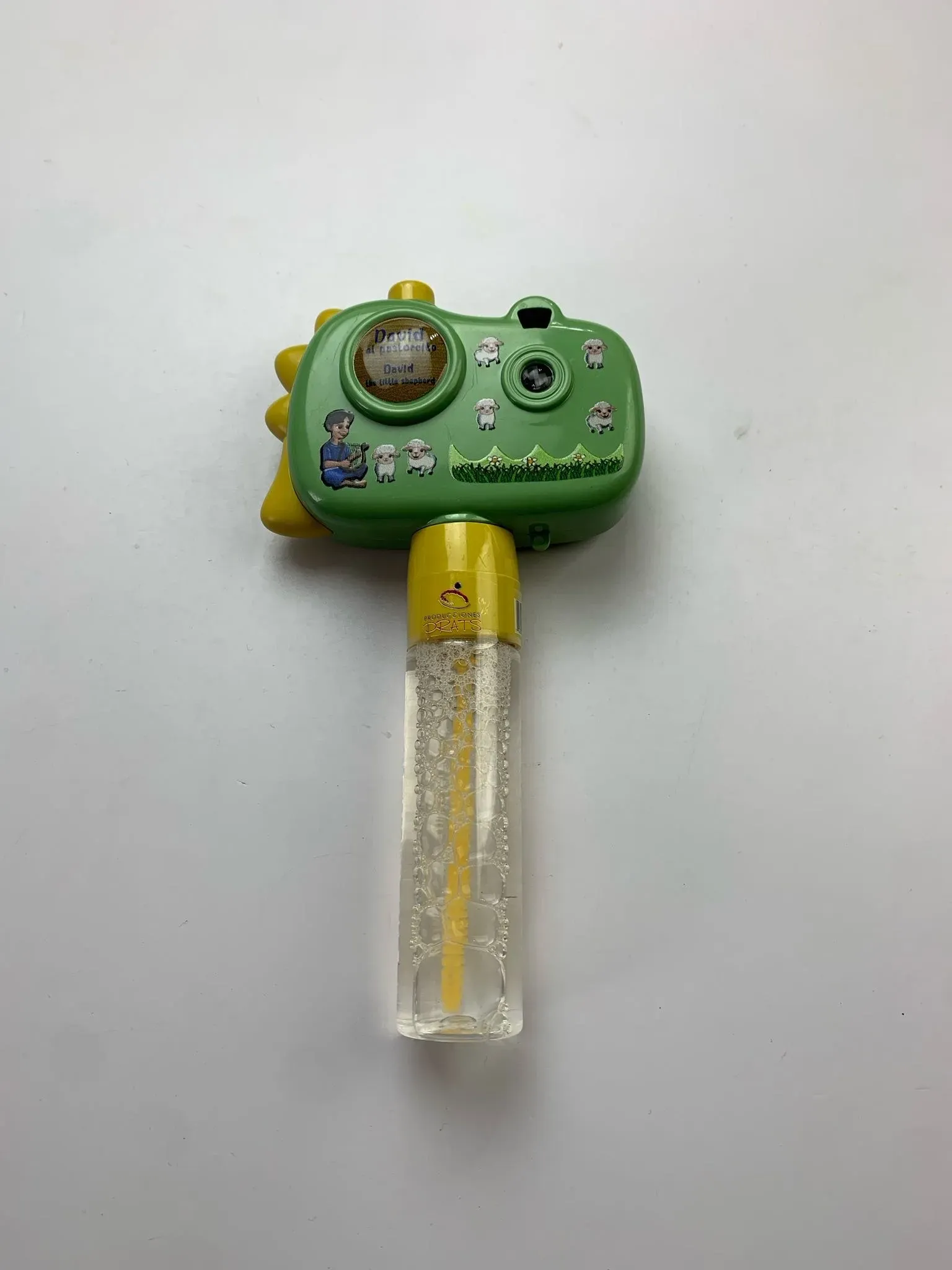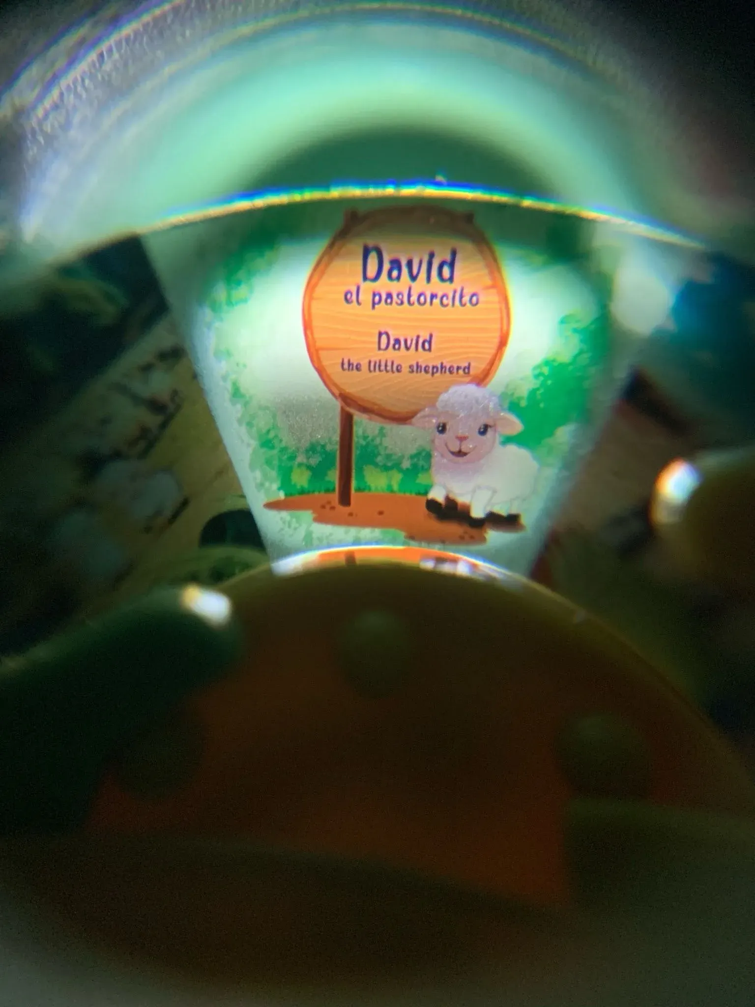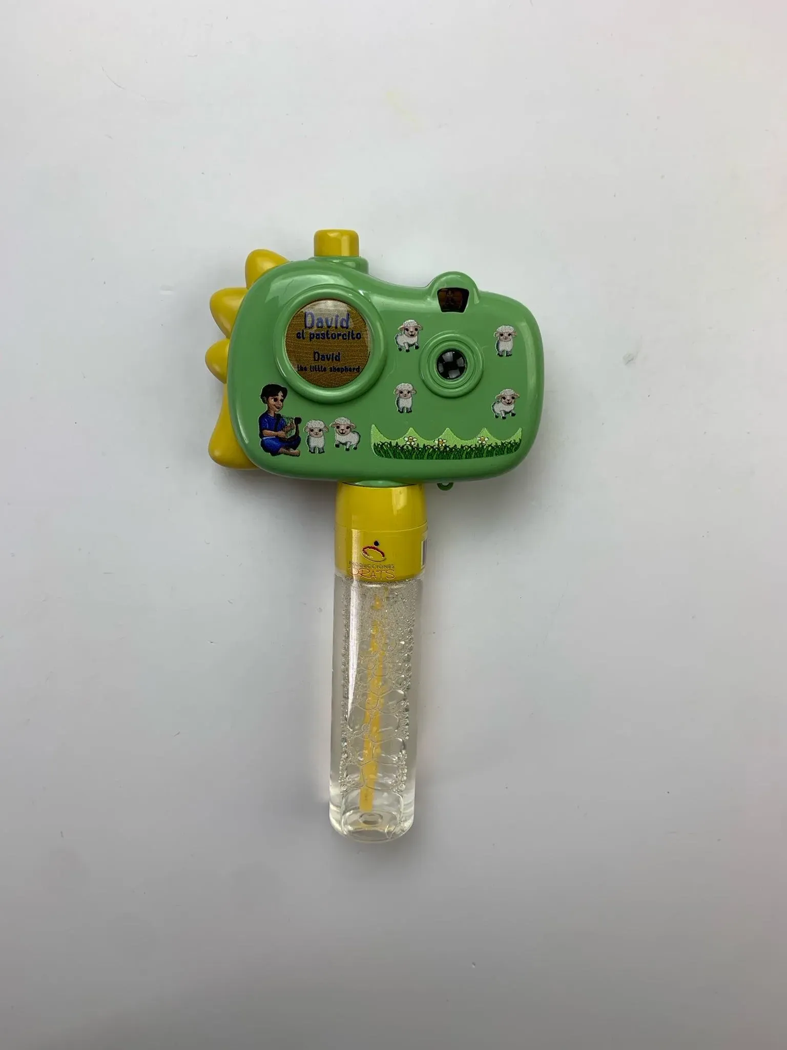 Los pequeños pasarán maravillosos momentos con este juguete multifunción que visualiza y proyecta imágenes con la historia de un personaje bíblico, además es un burbujero.
