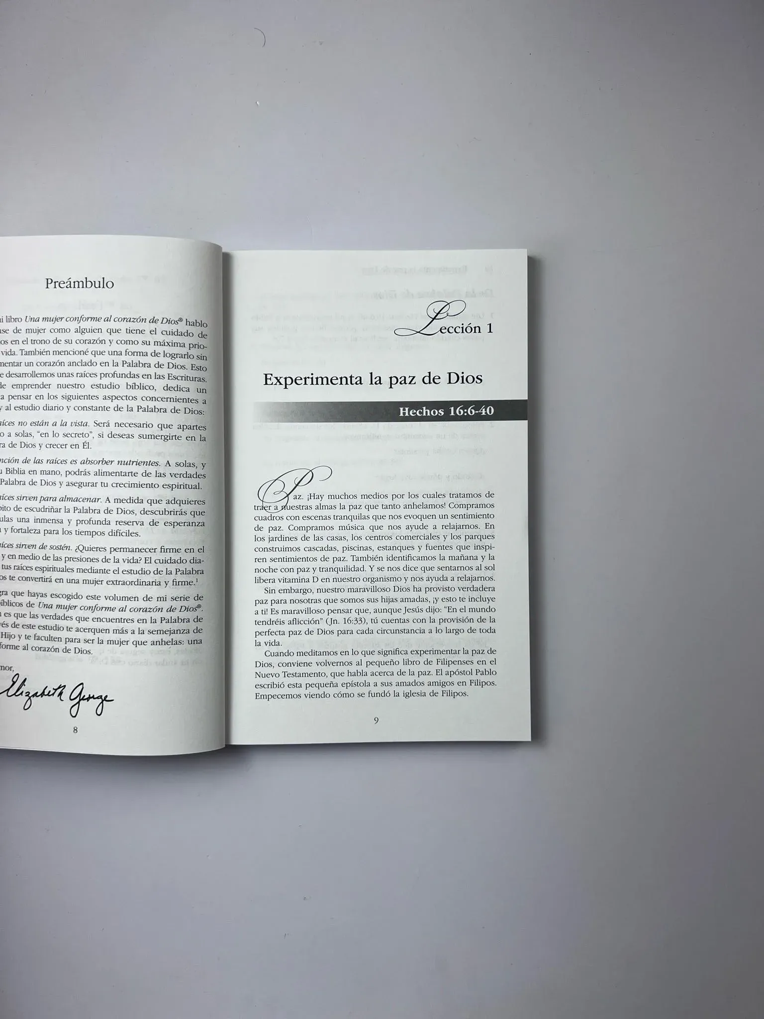 Elizabeth George destaca la presencia de la paz perfecta de Dios, y ayuda a las mujeres a conocer esta paz en todas las circunstancias de su vida. Las lectoras descubrirán cómo responder a las necesidades de los demás, cómo madurar en Jesucristo, y cómo superar la ansiedad. La sección de “respuesta ...