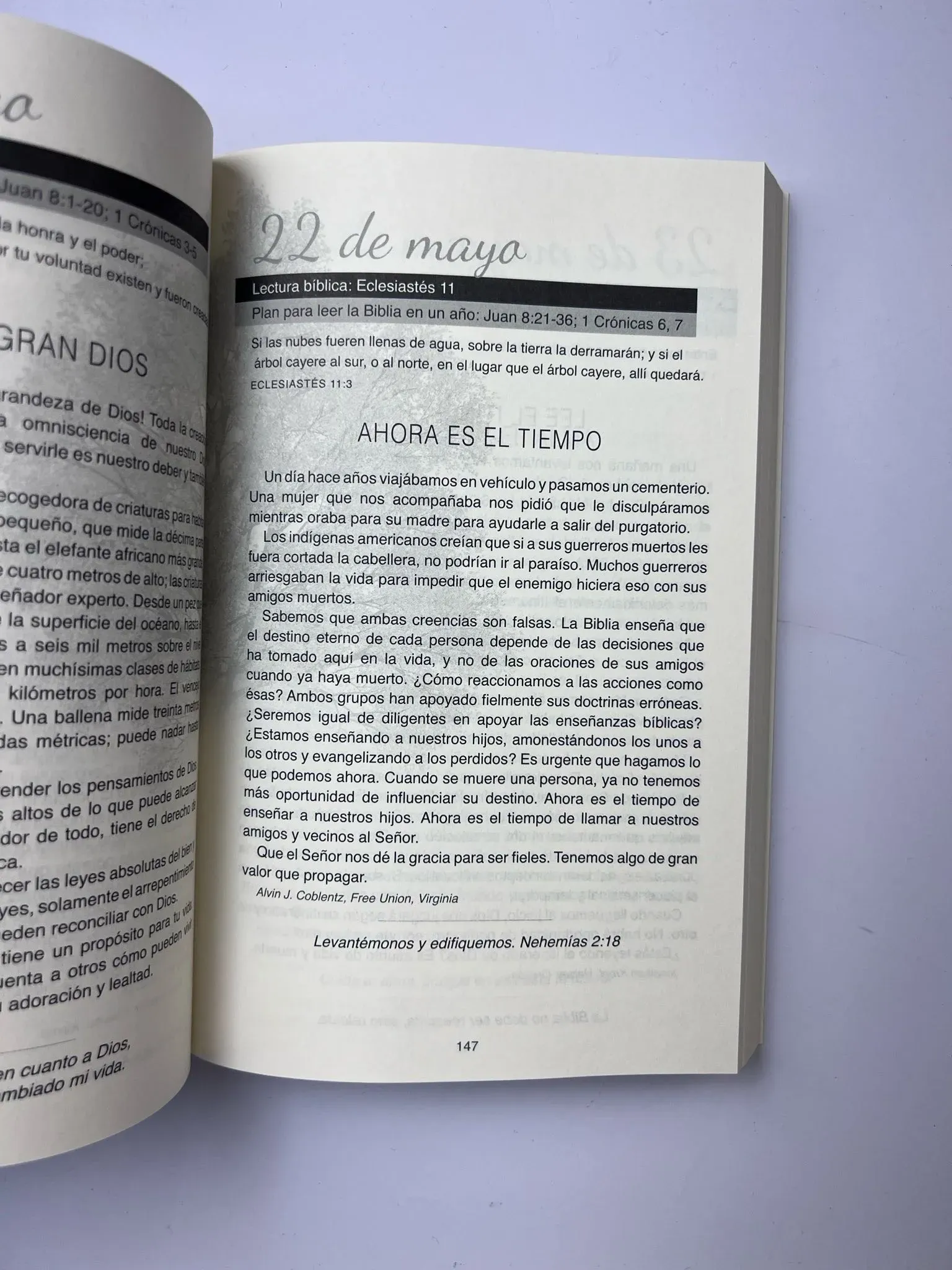 Junto a aguas de reposo Vol.3, compilado por “Still Waters Ministries”. Es esencial tener un tiempo diario para comunicarnos con Dios si deseamos lograr una vida cristiana triunfante. Junto a aguas de reposo le presenta una “meditación” para cada día del año, una lectura bíblica diaria y plan para l...