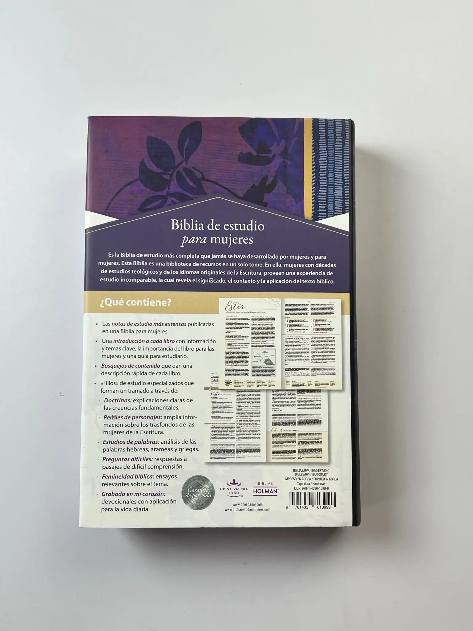 Biblia de Estudio para Mujeres con comentarios, notas, artículos bíblicos, cita marcadora, concordancia y mapas a todo color.