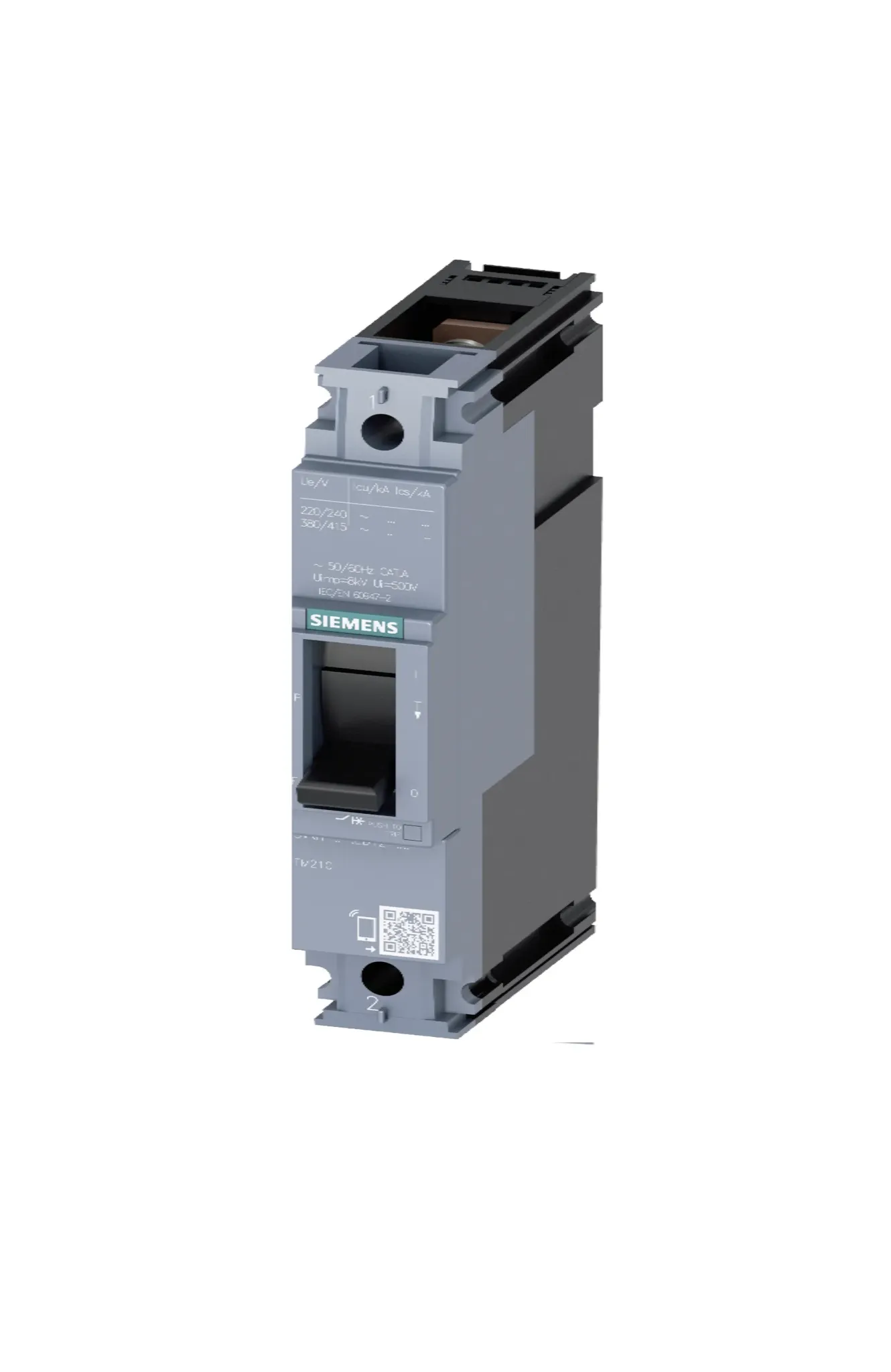Breaker Siemens 3VM1 IEC Frame 160 Clase de poder de corte N Icu=25kA, 240V 1 polo, protección de distribuciones TM210, FTFM, In=32 A protección de sobrecarga Ir=32 A invariable protección de cortocircuito Ii=10 x In conexión plana con tornillos.
