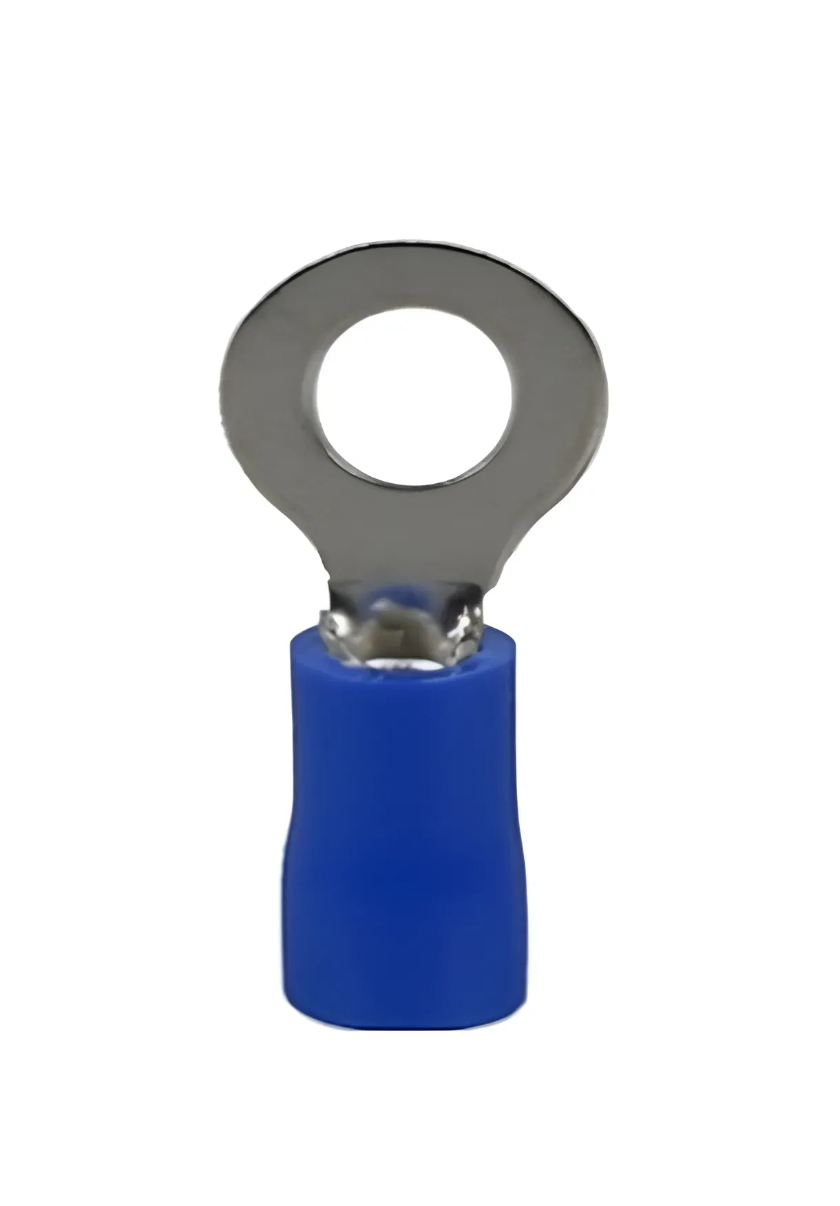 Terminal de anillo azul de 1/4" (6mm) para cables de calibre 16-14 AWG. Paquete con 100 piezas ideales para conexiones eléctricas seguras y confiables. Fabricados con materiales resistentes que garantizan una excelente conductividad. Perfectos para proyectos de electricidad en el hogar o la industri...