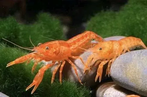 Langosta de pequeño tamaño y color naranja, ideal para acuarios de agua dulce.