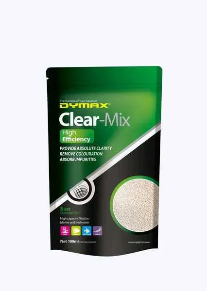 Clear-Mix es un absorbente de polímero sintético macroporoso único que elimina las impurezas solubles e insolubles y la coloración del agua debido a la presencia de madera flotante o alimentos, a una velocidad y capacidad 5 veces superior a la de cualquier otro producto de filtración del mercado.
