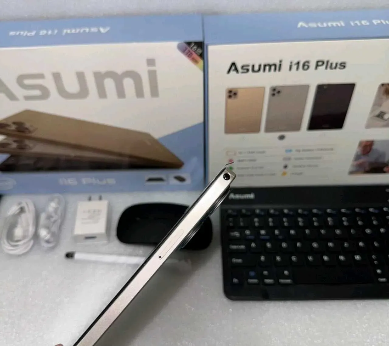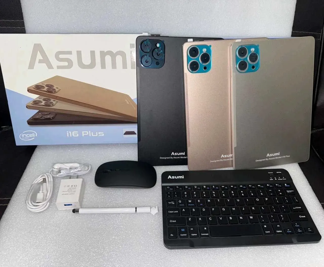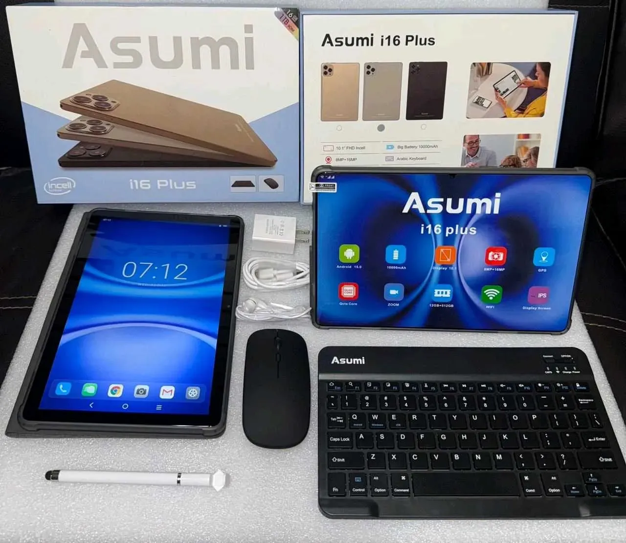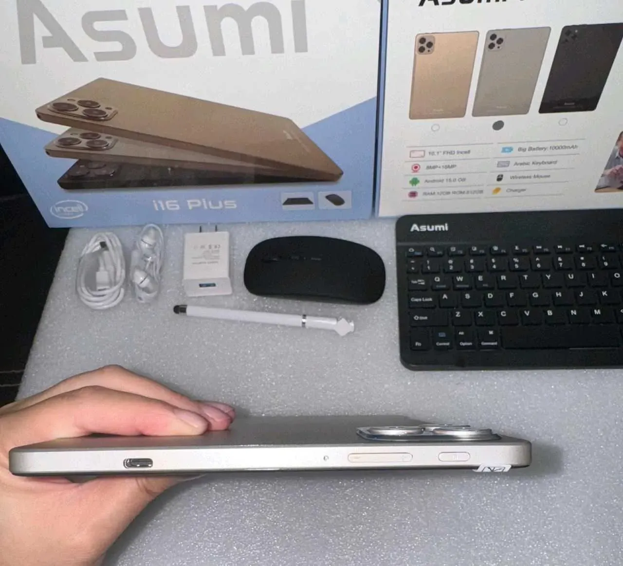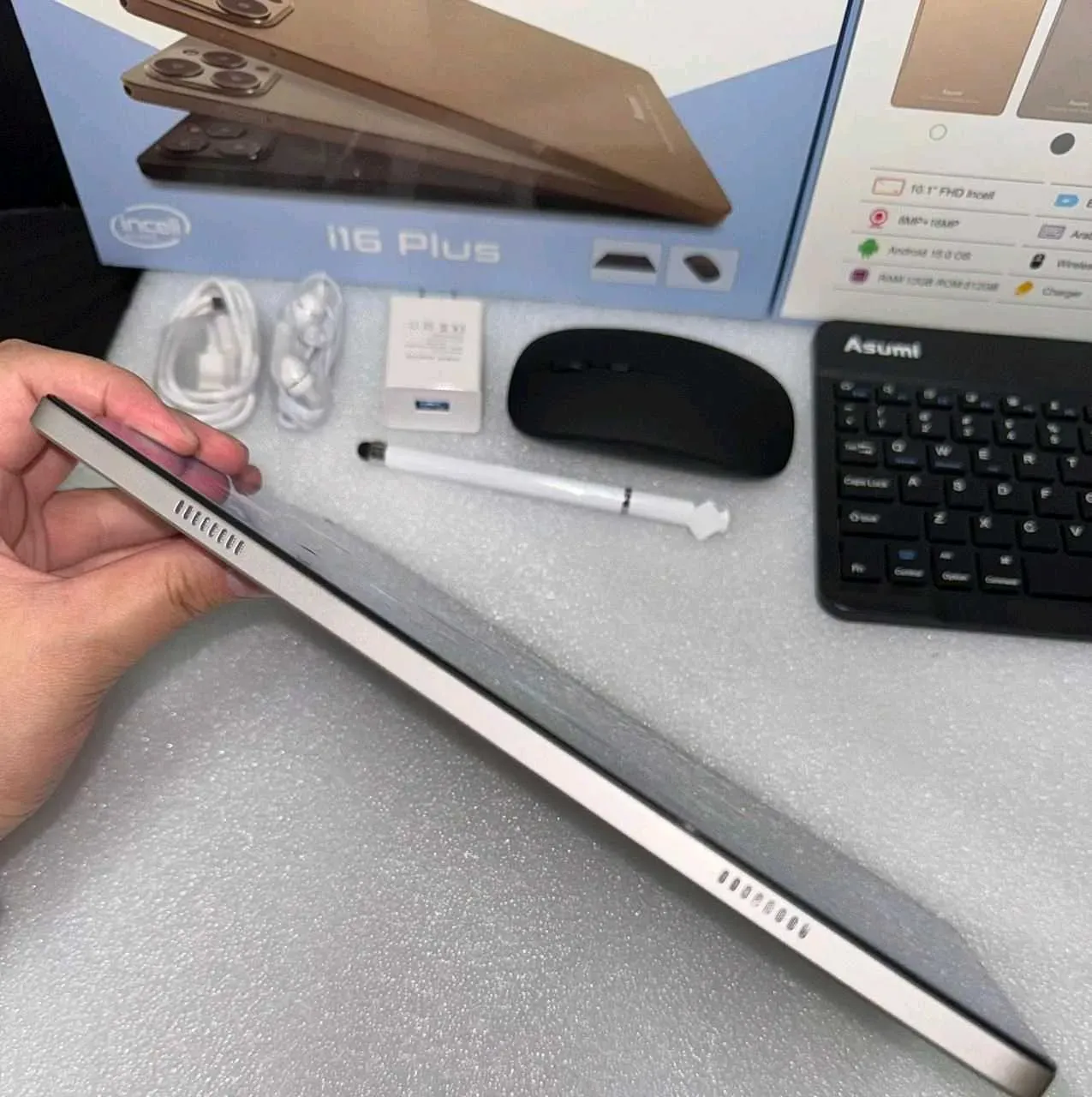 Con funda, pluma, teclado ,mause ,audifonos y mica ya icluido el cargador completo