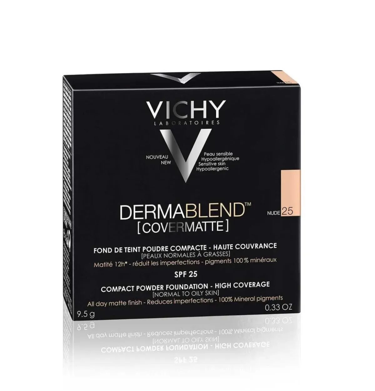 Polvo compacto de alta cobertura tono 25 para un terminado mate durante todo el día.