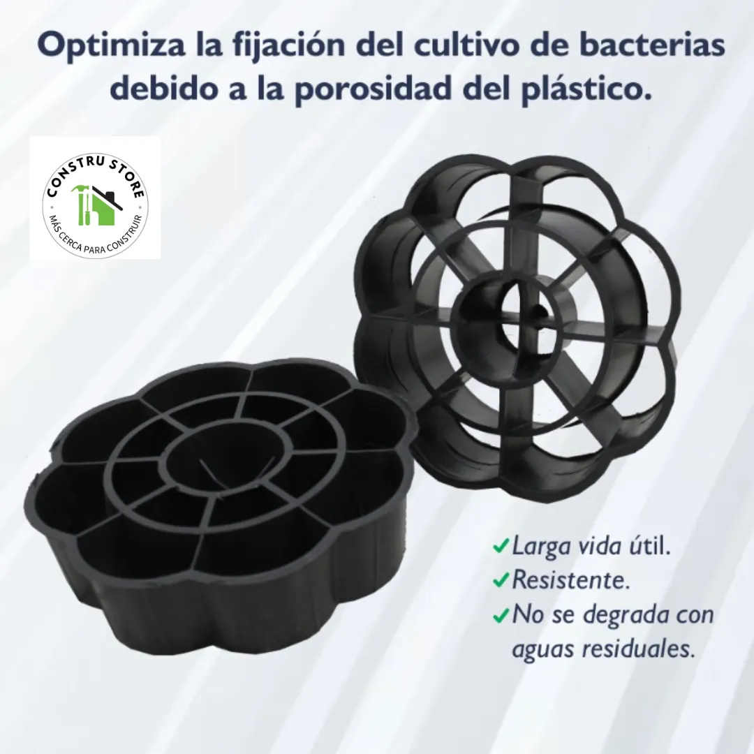 El Rosetón Plástico Filtrante es un anillo con 20 cavidades fabricadas en polipropileno, materiales que garantiza su durabilidad y resistencia al ataque de los hongos y bacterias.