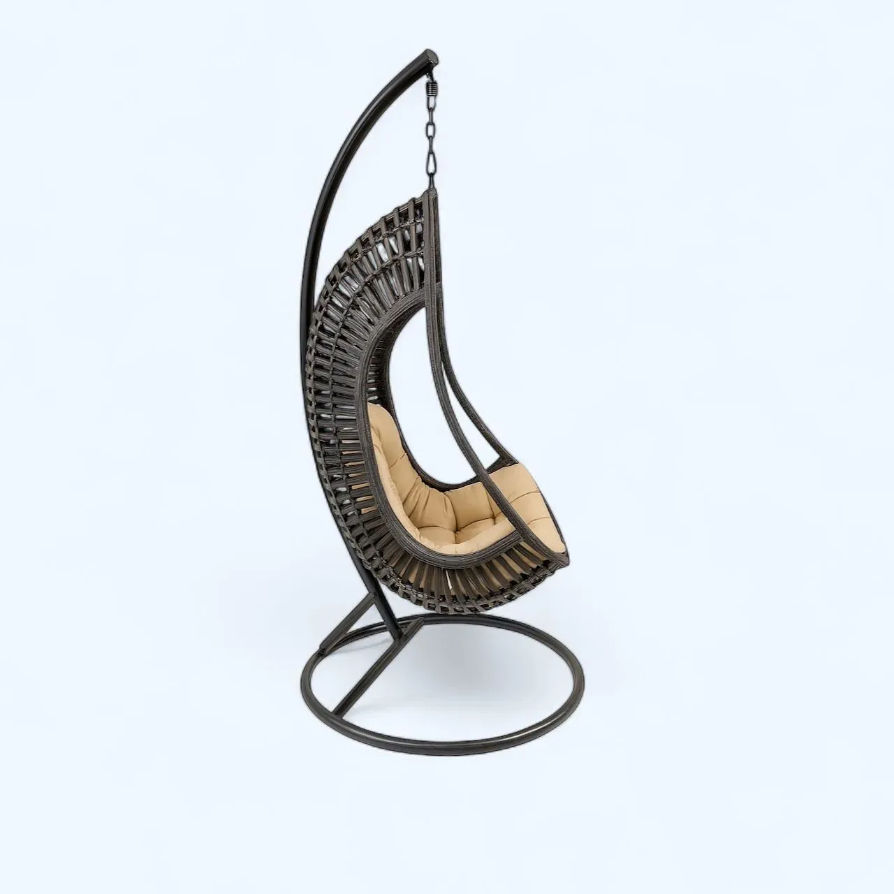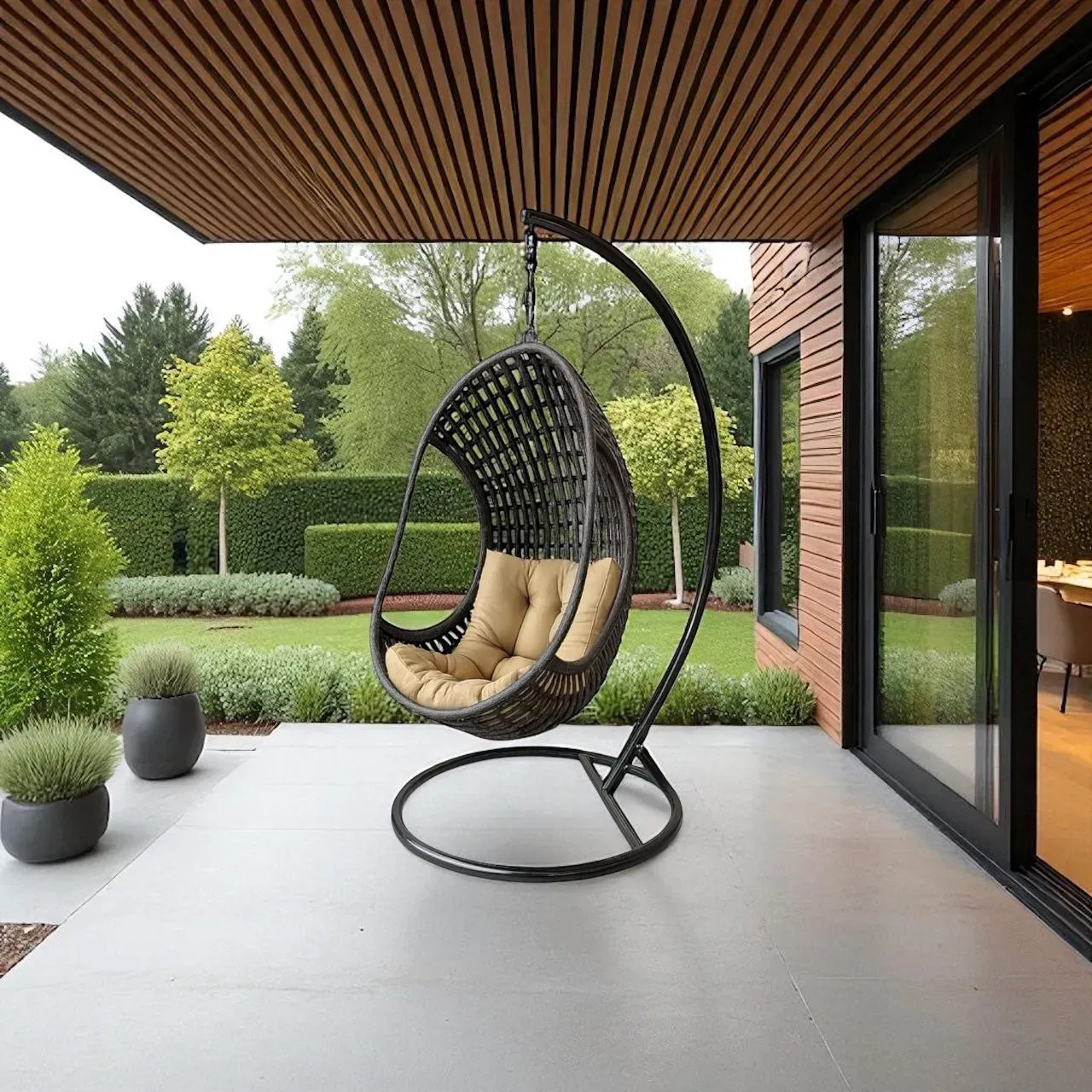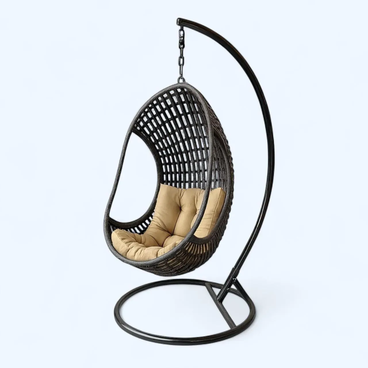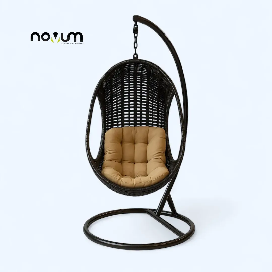 Disfruta de la combinación perfecta entre estilo, resistencia y confort con este exclusivo columpio elaborado en polirattan de alta calidad y estructura metálica robusta. Su diseño moderno con cojín acolchado ofrece una experiencia de descanso única, ideal para interiores y exteriores.
