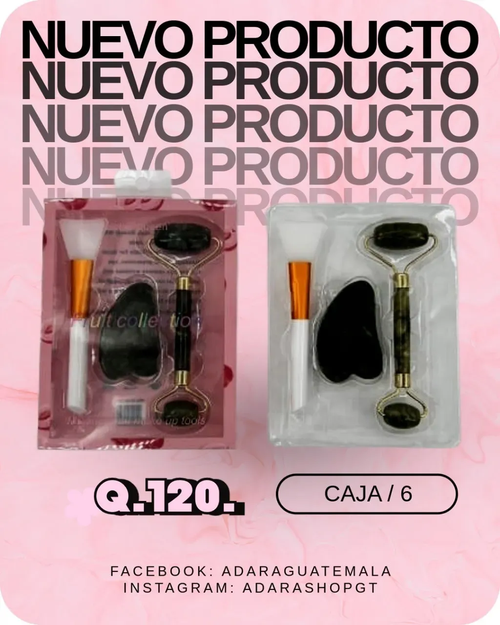 Kit Facial de Rodillo de Jade, Gua Sha y Brocha para Mascarilla