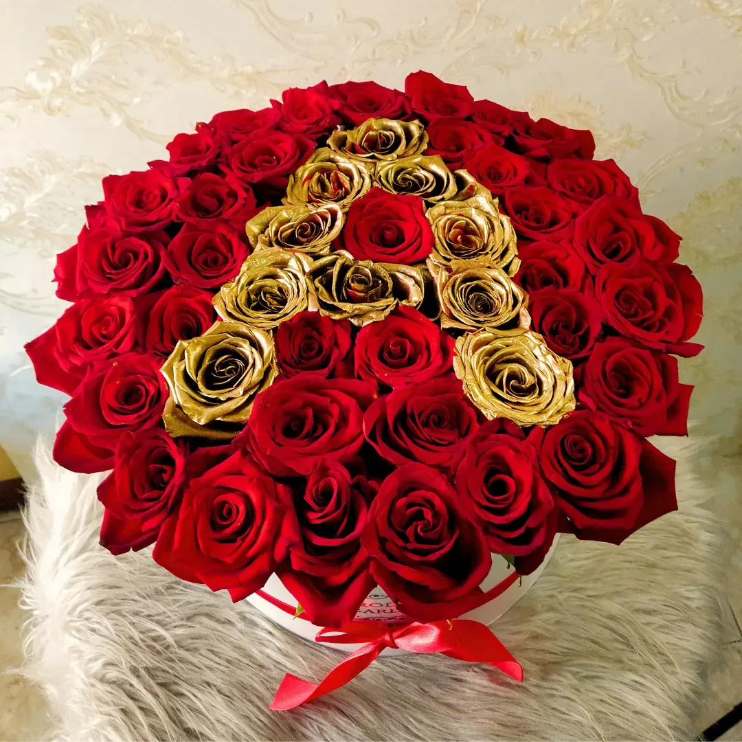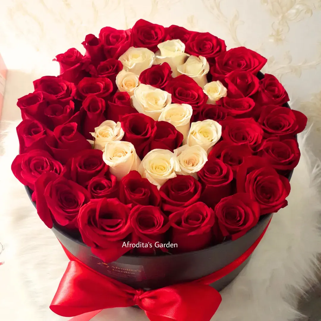 Hermoso detalle elaborado con aproximadamente 50 rosas y decorado con letra de diferente color a su elección.