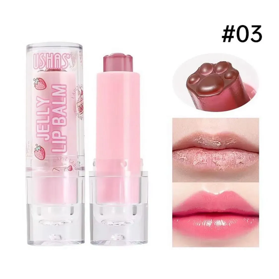 • El bálsamo labial de gelatina en forma de huella de gatito Ushas es un producto de belleza que combina hidratación y un diseño divertido.