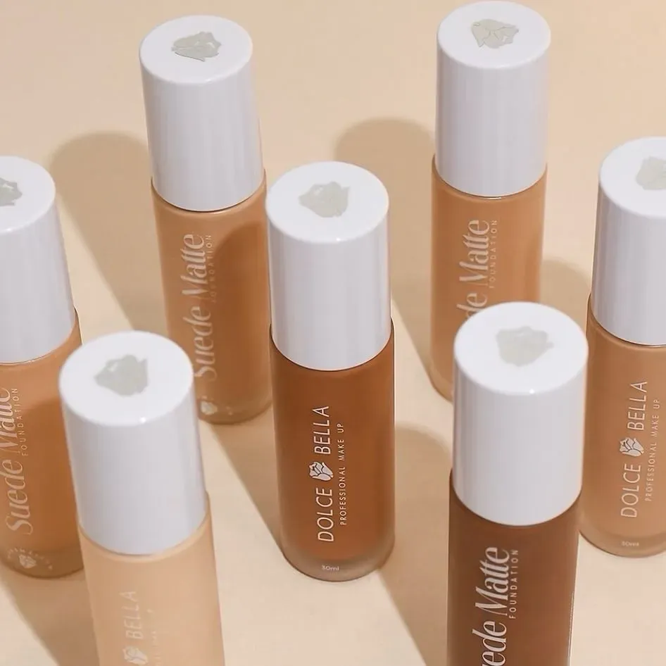 • La base de maquillaje Suede Matte de Dolce Bella es un producto líquido de textura ligera y acabado mate aterciopelado, diseñado para ofrecer una cobertura media-alta.