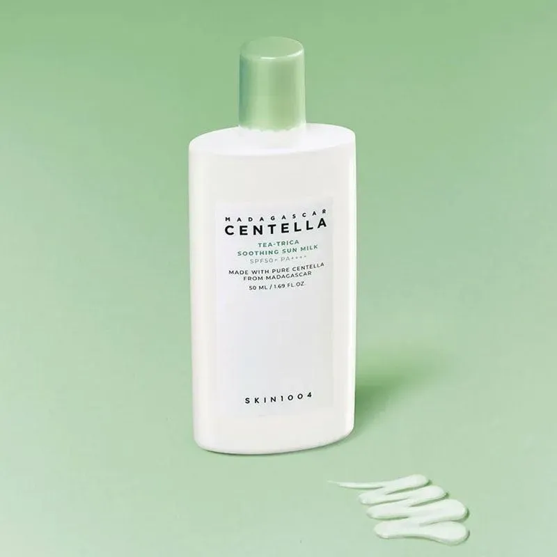 • Descubre la protección solar definitiva con TEA-TRICA SOOTHING SUN MILK de SKIN1004. Especialmente formulado para brindar una protección completa y calmante, este protector solar es ideal para todo tipo de piel, especialmente con tendencia al acné y sensibles.