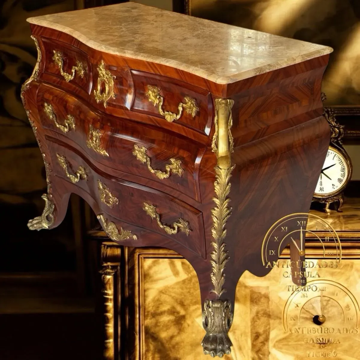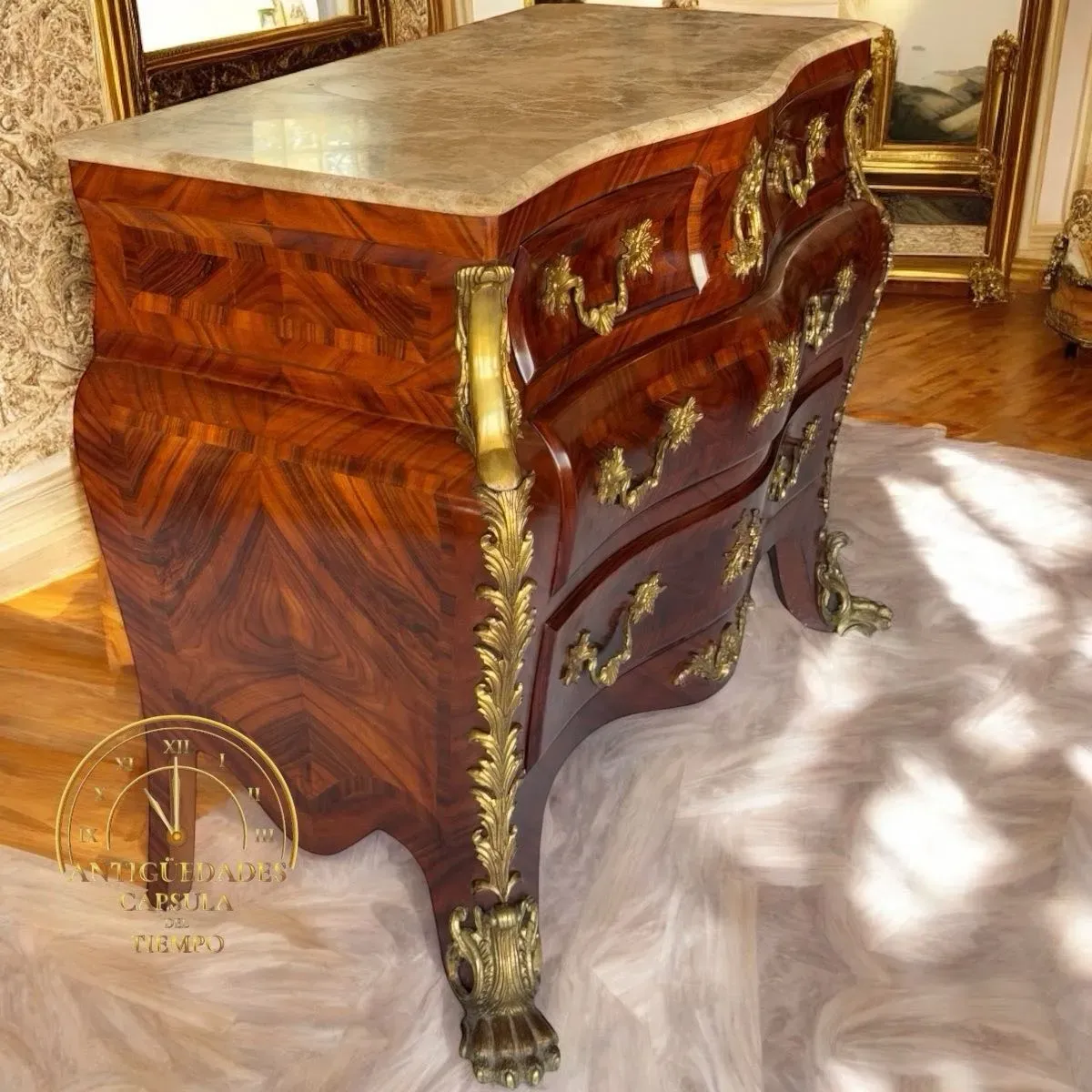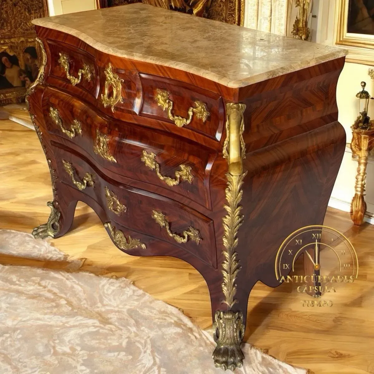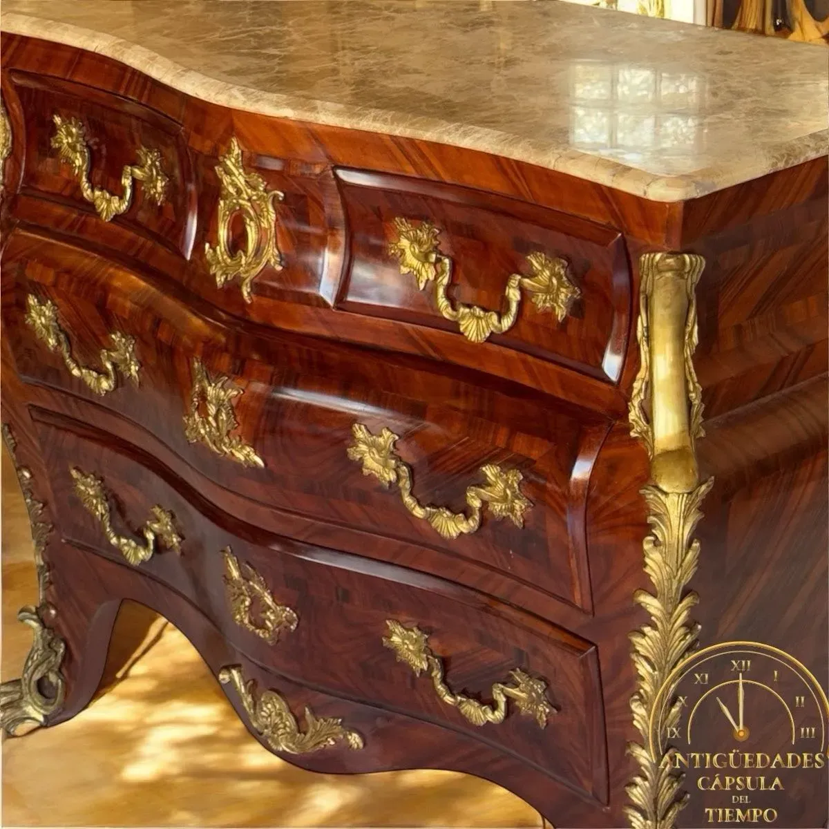 ⚜️CÓMODA A LA REGENCE⚜️ TOMBEAU / A MOUTACHE⚜️ HERMOSA CÓMODA EN MADERAS DE ROBLE Y CHAPAS DE PALISANDRO⚜️ LATERALES Y FRONTAL CURVOS ADORNADOS CON BRONCES DORADOS⚜️ SOPORTES EN PATAS DE LEÓN DE BRONCE ⚜️ BASE EN MÁRMOL⚜️