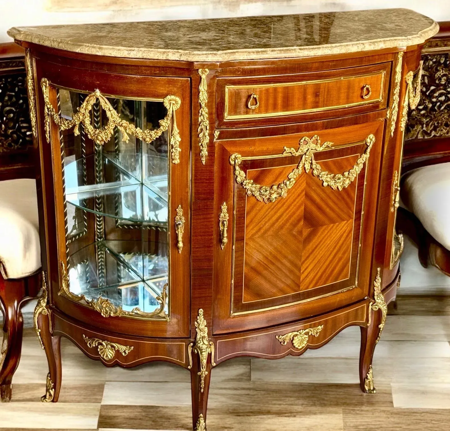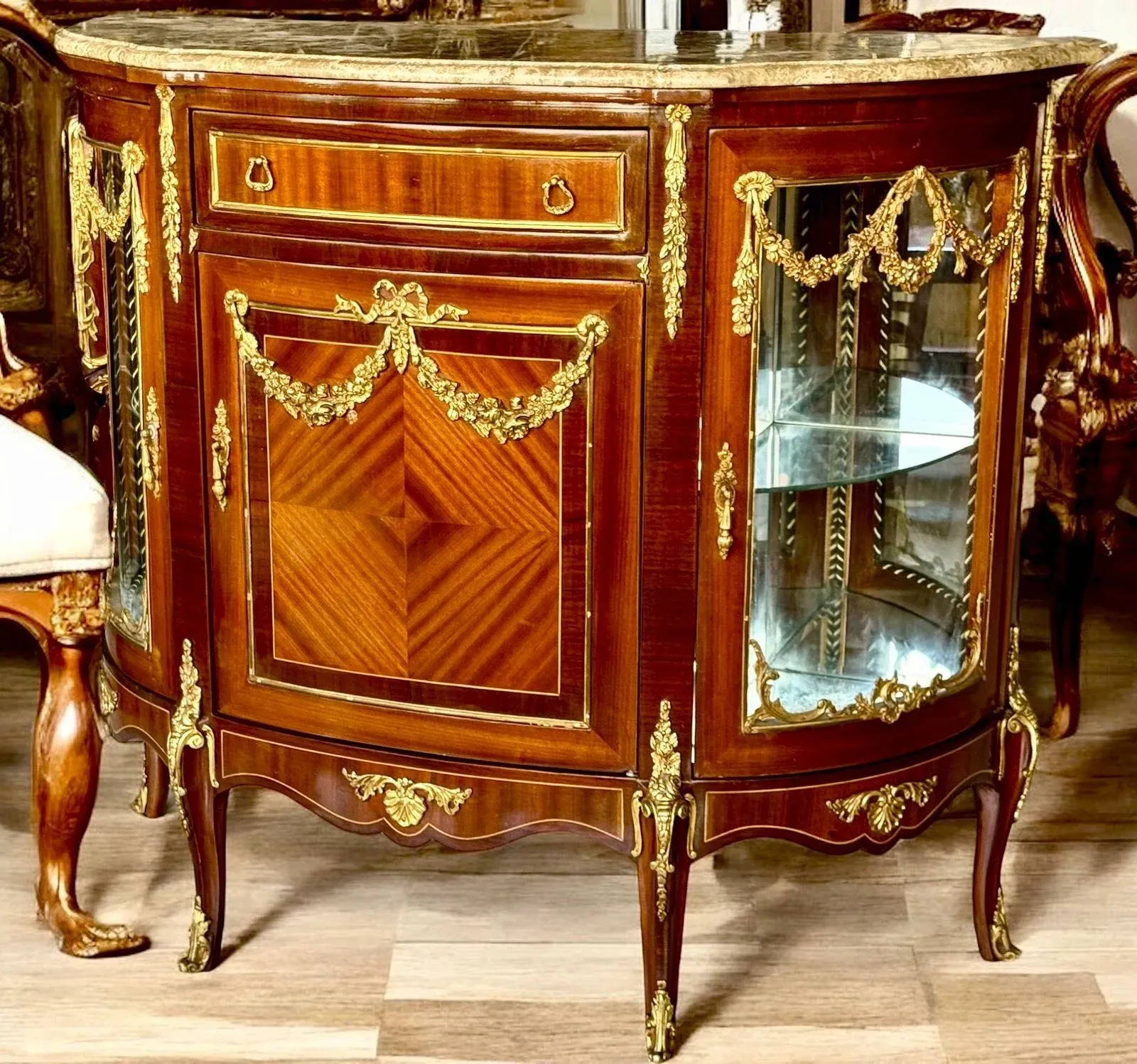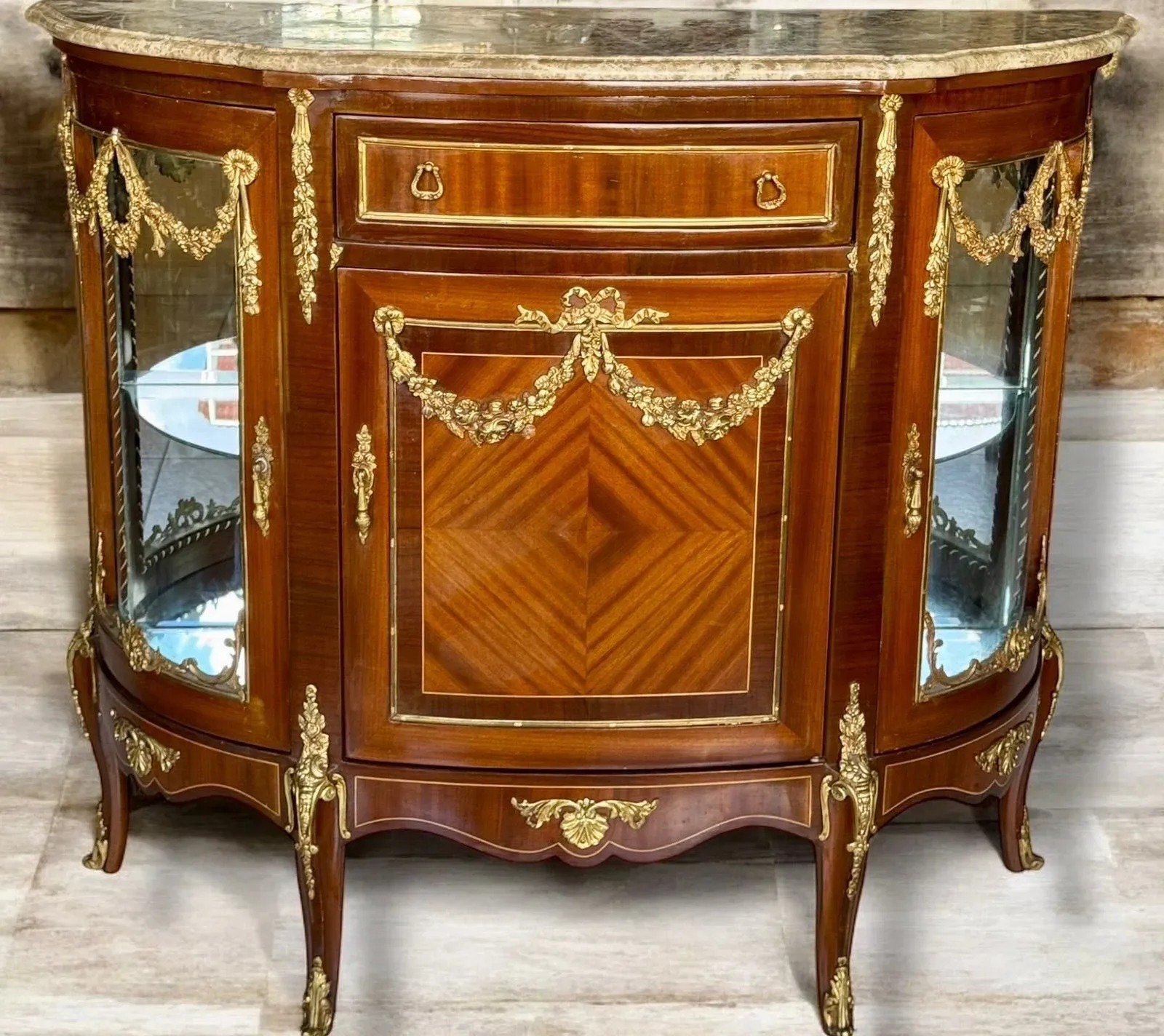 ⚜️HERMOSA CÓMODA FRANCESA INSPIRADA EN JOSEP EMMANUEL ZWIENER⚜️ESTILO LUIS XV⚜️ ELABORADA EN MADERAS DE TULIPWOOD/ ÁLAMO⚜️ ELEVADA SOBRE HERMOSAS PATAS ADORNADAS CON ROLEOS⚜️ RICOS MOTIVOS DE HOJAS DE ACANTO, FINAS CANALETAS , CAÍDAS CON ELEMENTOS FLORALES EN BRONCE DORADO⚜️ LATERALES EN CRISTALES C...
