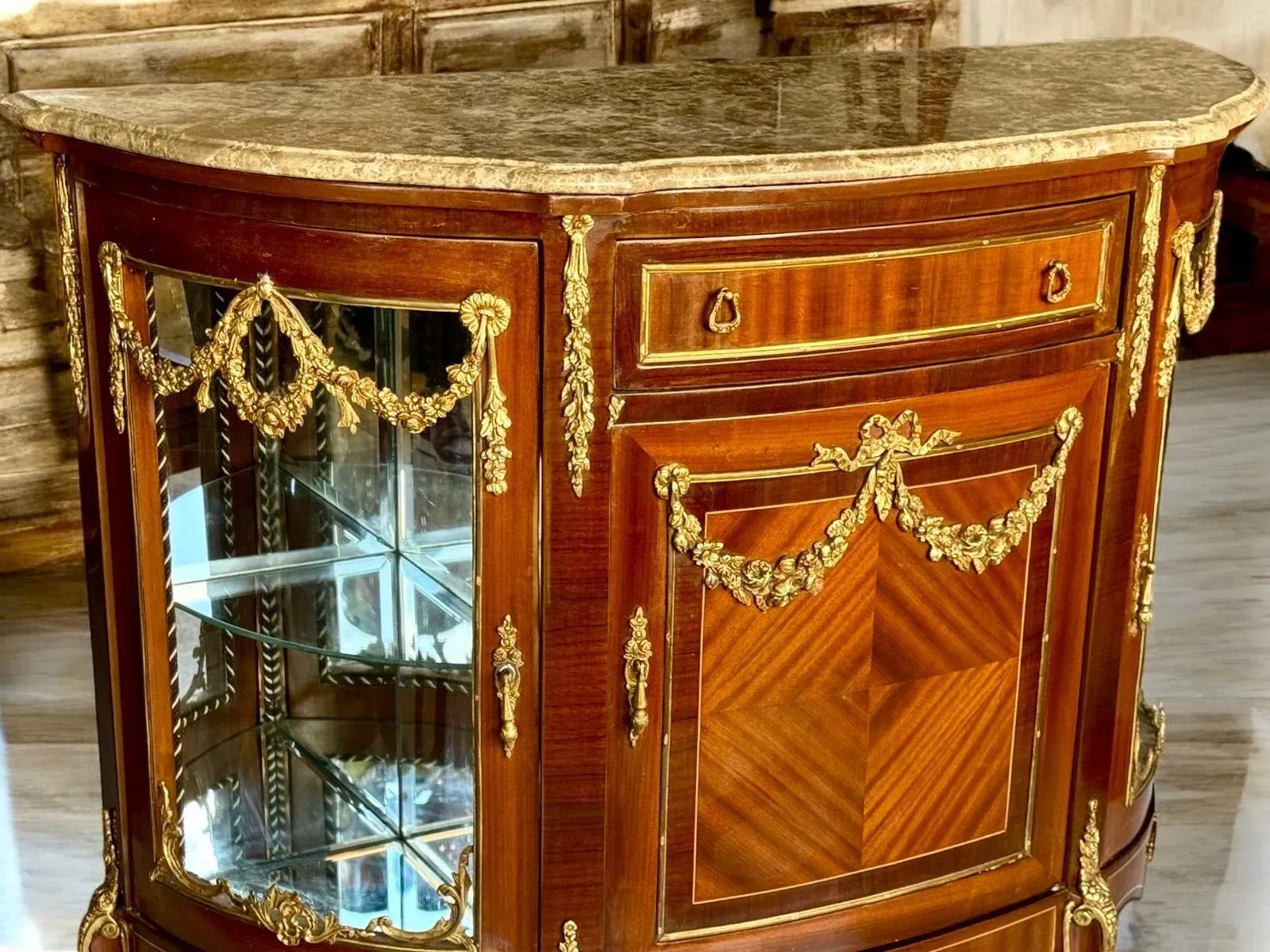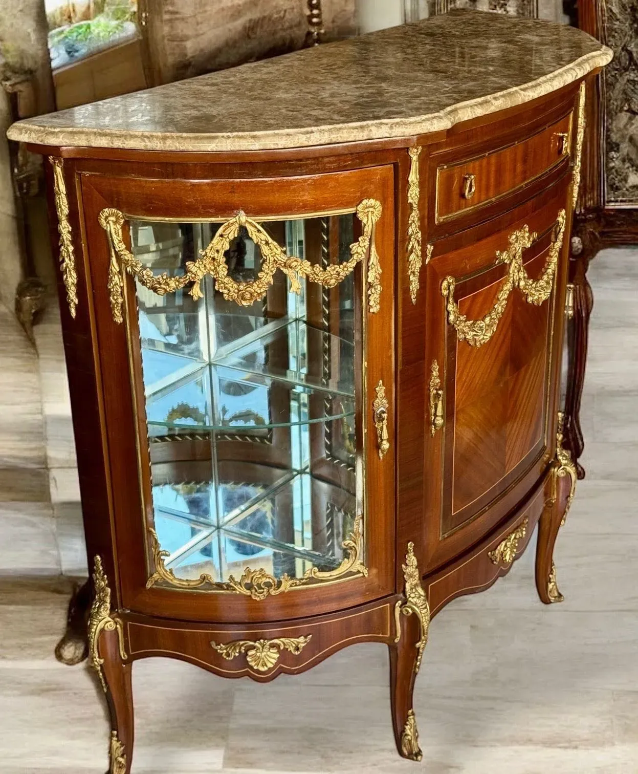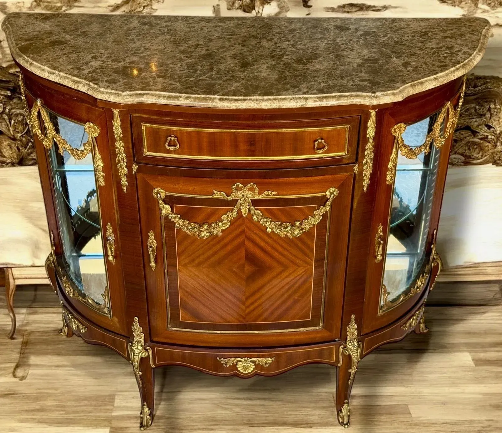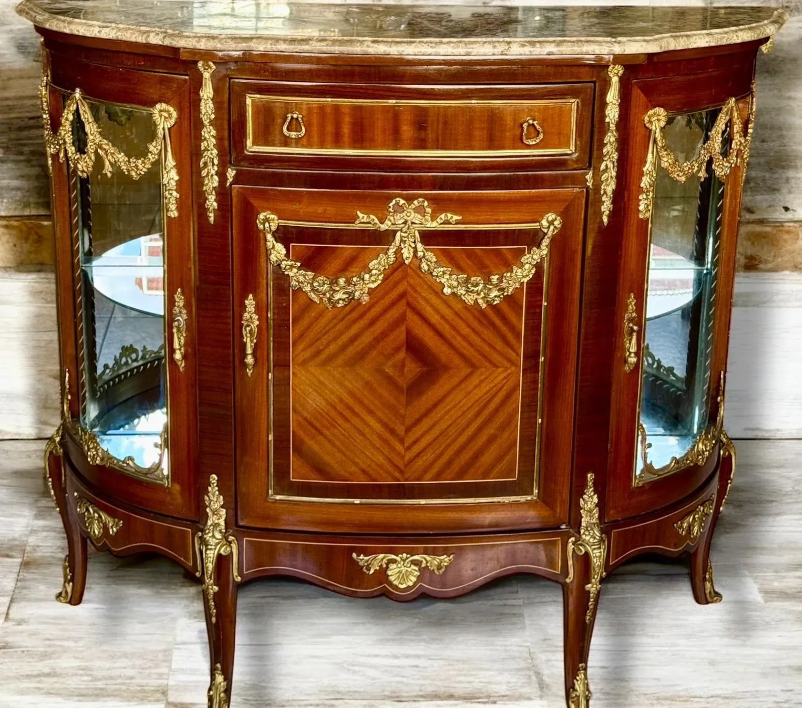 ⚜️HERMOSA CÓMODA FRANCESA INSPIRADA EN JOSEP EMMANUEL ZWIENER⚜️ESTILO LUIS XV⚜️ ELABORADA EN MADERAS DE TULIPWOOD/ ÁLAMO⚜️ ELEVADA SOBRE HERMOSAS PATAS ADORNADAS CON ROLEOS⚜️ RICOS MOTIVOS DE HOJAS DE ACANTO, FINAS CANALETAS , CAÍDAS CON ELEMENTOS FLORALES EN BRONCE DORADO⚜️ LATERALES EN CRISTALES C...