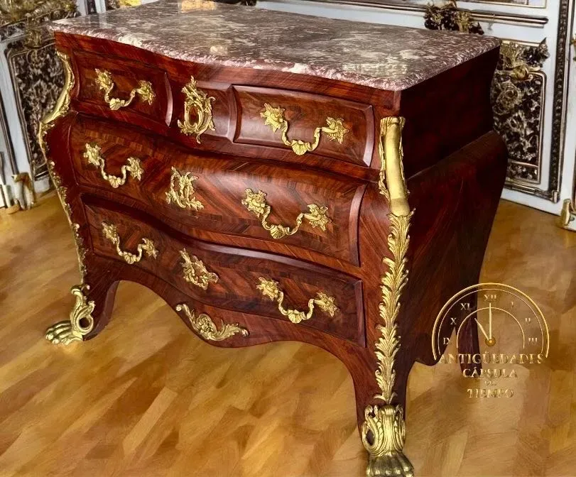 ⚜️ ELEGANTE GABINETE FRANCÉS INSPIRADO EN ETIENNE DORIAT ⚜️ REGENCE TUMBEAU ⚜️ CREADO EN RICAS CHAPAS DE AMARANTO, SE SOSTIENE SOBRE ELEGANTES PATAS CON IMPRESIONANTES SABOTS A MANERA DE GARRA Y DISEÑOS DE ACANTOS QUE ASCIENDEN POR CADA LADO EN BRONCES ⚜️ CADA CAJÓN PRESENTA MARAVILLOSOS TIRADORES ...