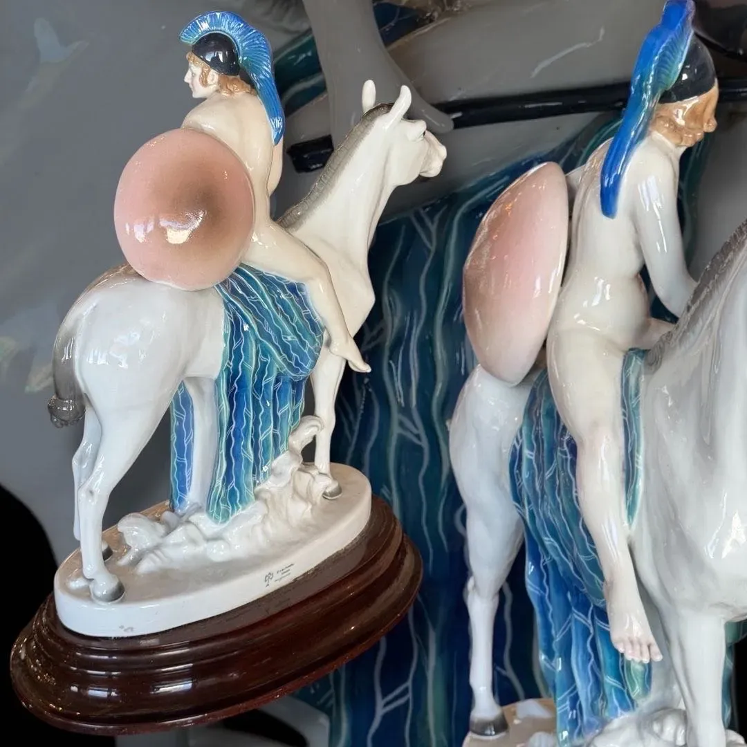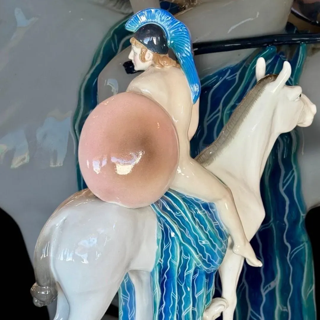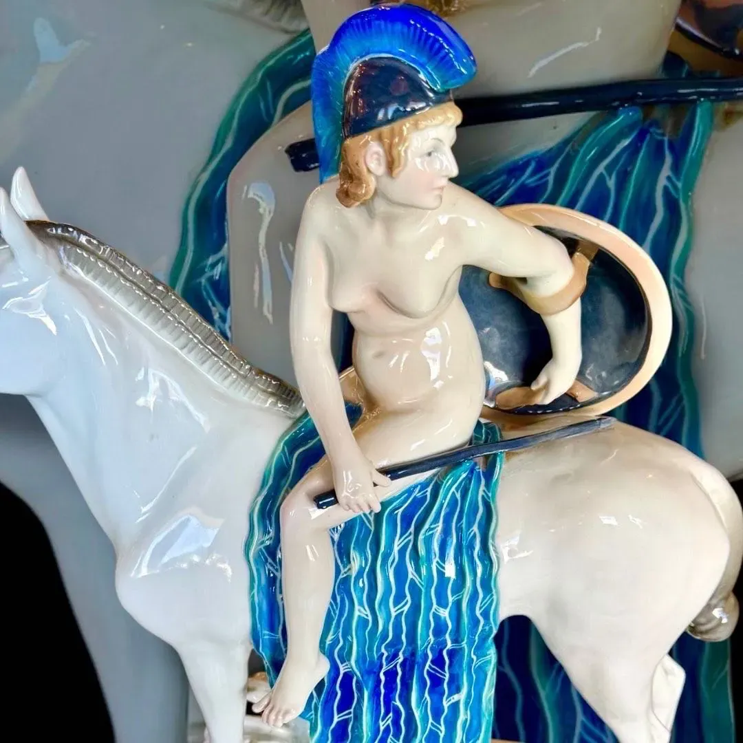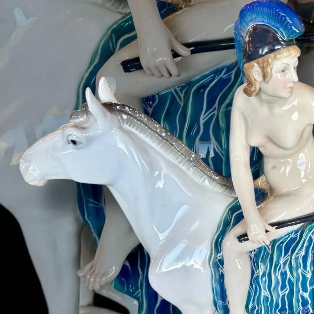 ⚜️BELLA PIEZA DE COLECCIÓN ⚜️GERMANY⚜️ KARL ENS VOLKSTEDT⚜️ INCREÍBLE ESCENA DE AMAZONA A CABALLO DESNUDA CON MIRADA QUE REVELA CIERTA INSEGURIDAD ⚜️ ELABORADA EN PORCELANA Y DECORADA CON COLORES PASTEL⚜️
