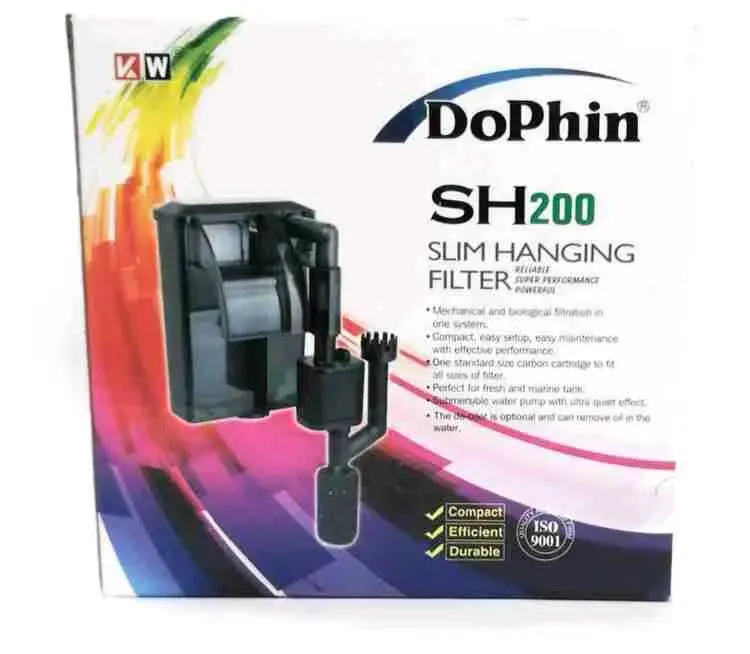 El filtro colgante Dophin SH200 Slim es una bomba de agua sumergible ultrasilenciosa. Ofrece filtración mecánica y biológica en un solo sistema y se suministra con un cartucho de carbón de tamaño estándar compatible con todos los tamaños de filtro.