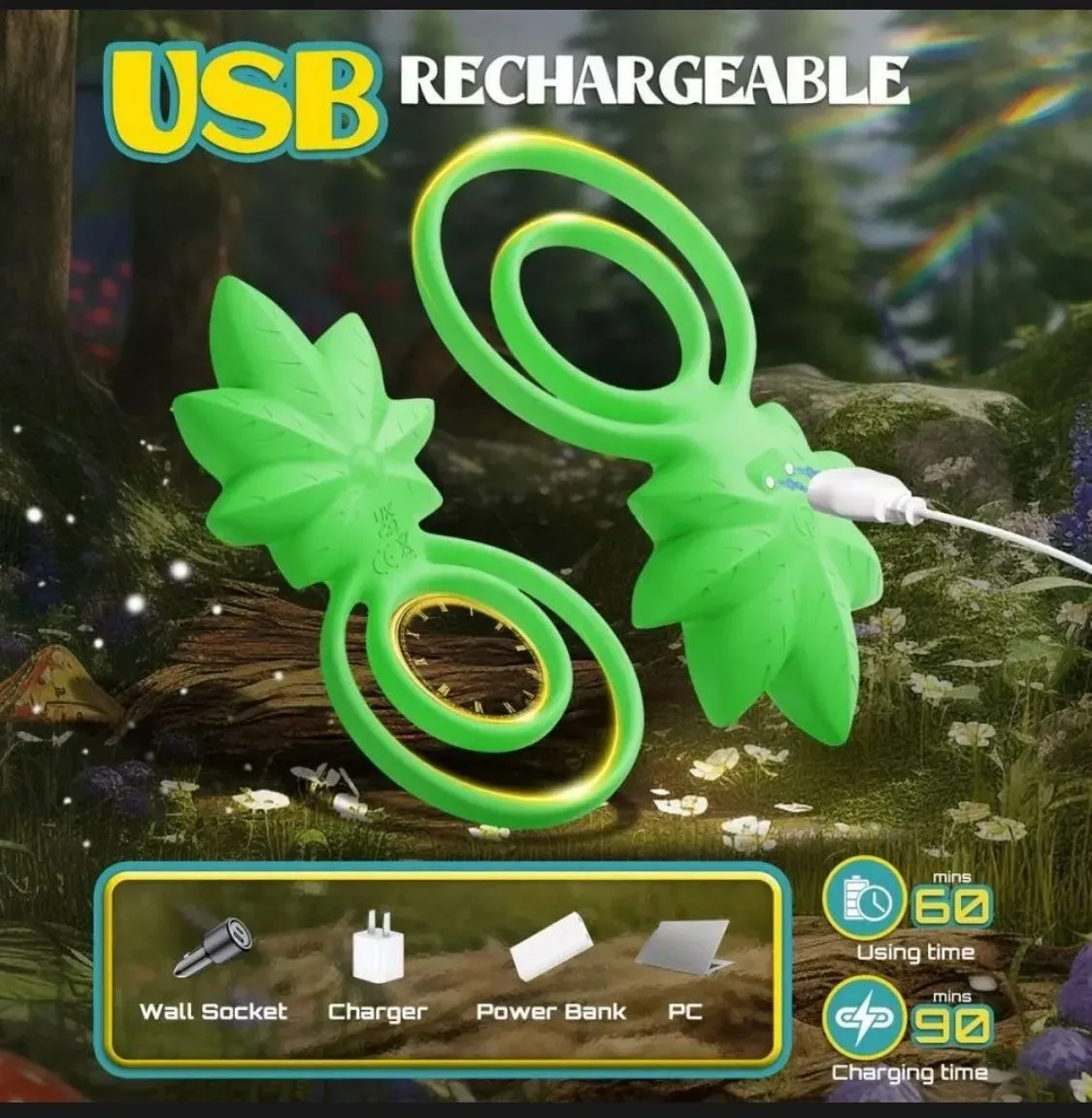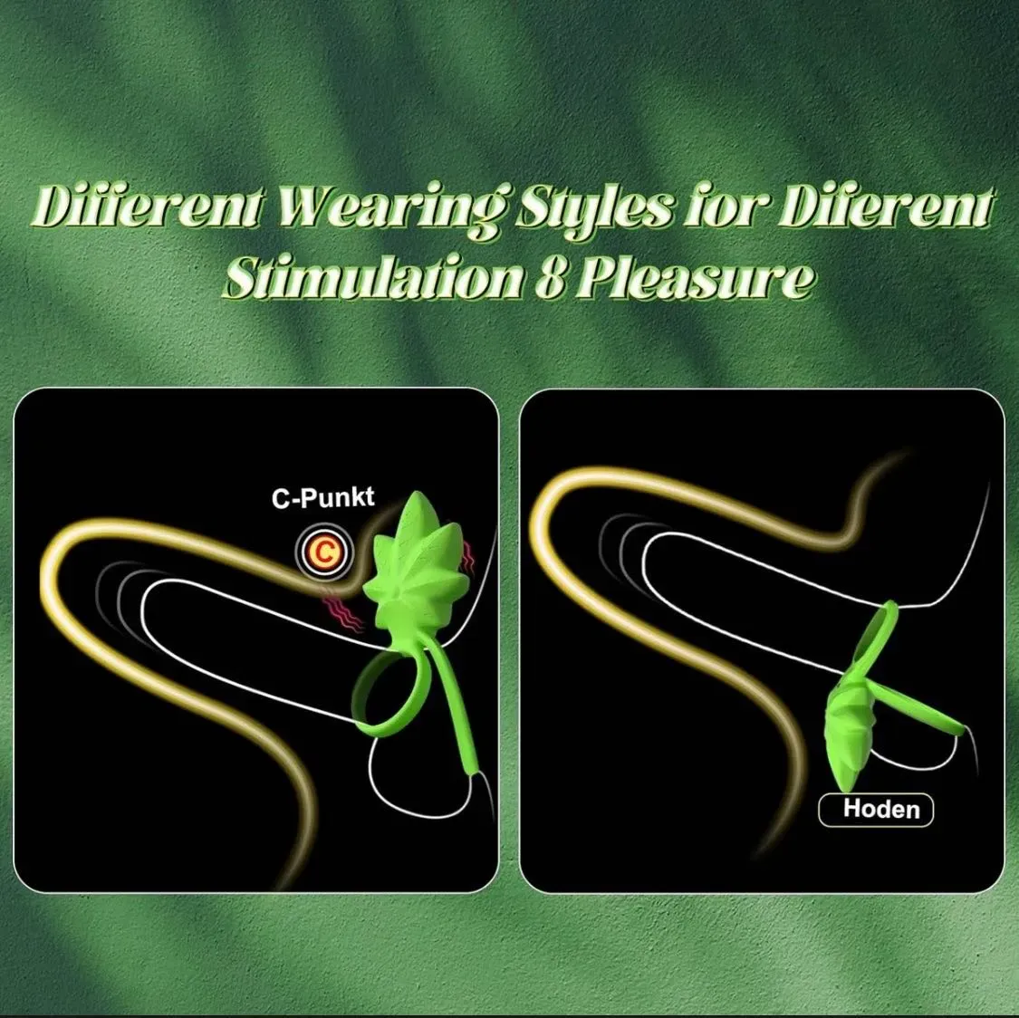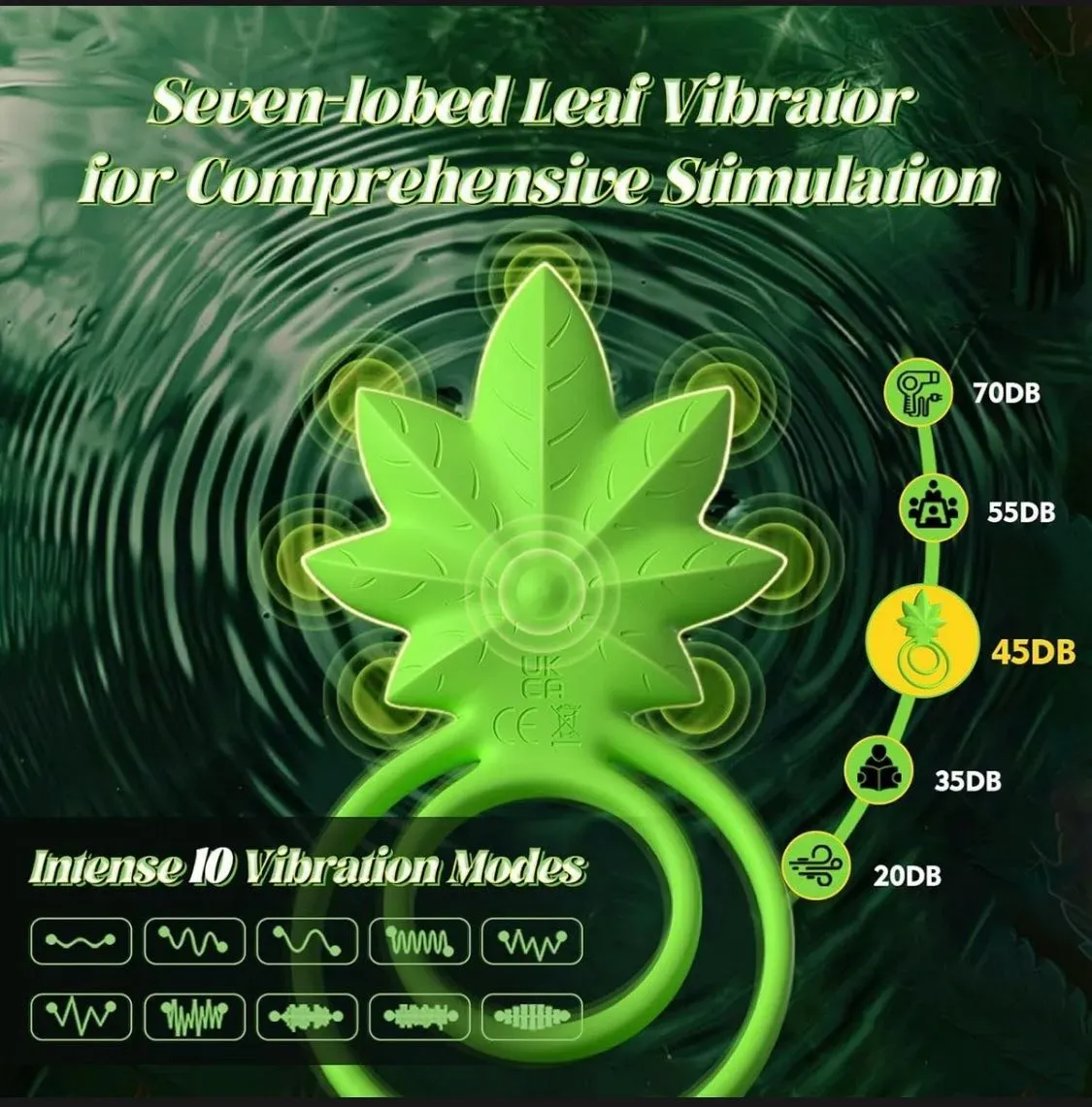 Mejora las erecciones con este anillo vibrador en forma de hoja cannabis.