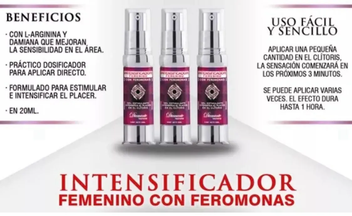 Toma el Control de tus Sensaciones con el Intensificador Femenino con Feromonas con práctico dosificador para aplicar directo en el clítoris. Mejora tu sensibilidad sexual, para juegos en pareja o tu sola.