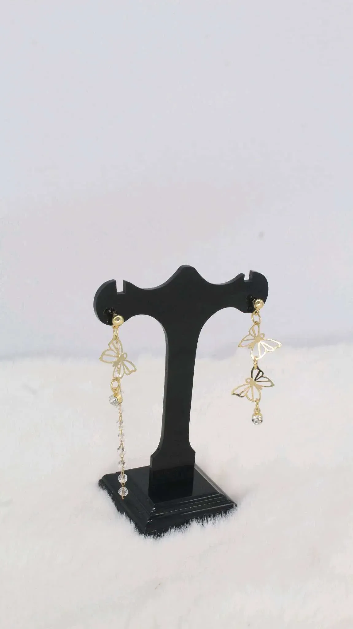 Estos hermosos zarcillos colgantes con diseño de mariposas son el complemento perfecto para realzar tu estilo. Con un toque de elegancia y moda, estos accesorios te harán lucir radiante en cualquier ocasión. ¡Atrévete a brillar con estos zarcillos únicos!
