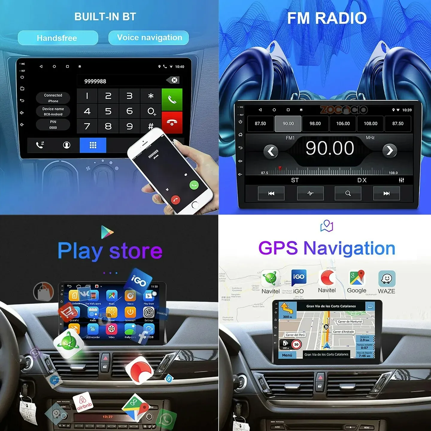 Radio de coche: 1080P de alta definición, pantalla táctil capacitiva completa, entrada de adaptador USB dual, recepción GPS integrada, la navegación fuera de línea se puede descargar directamente desde la tienda de aplicaciones.