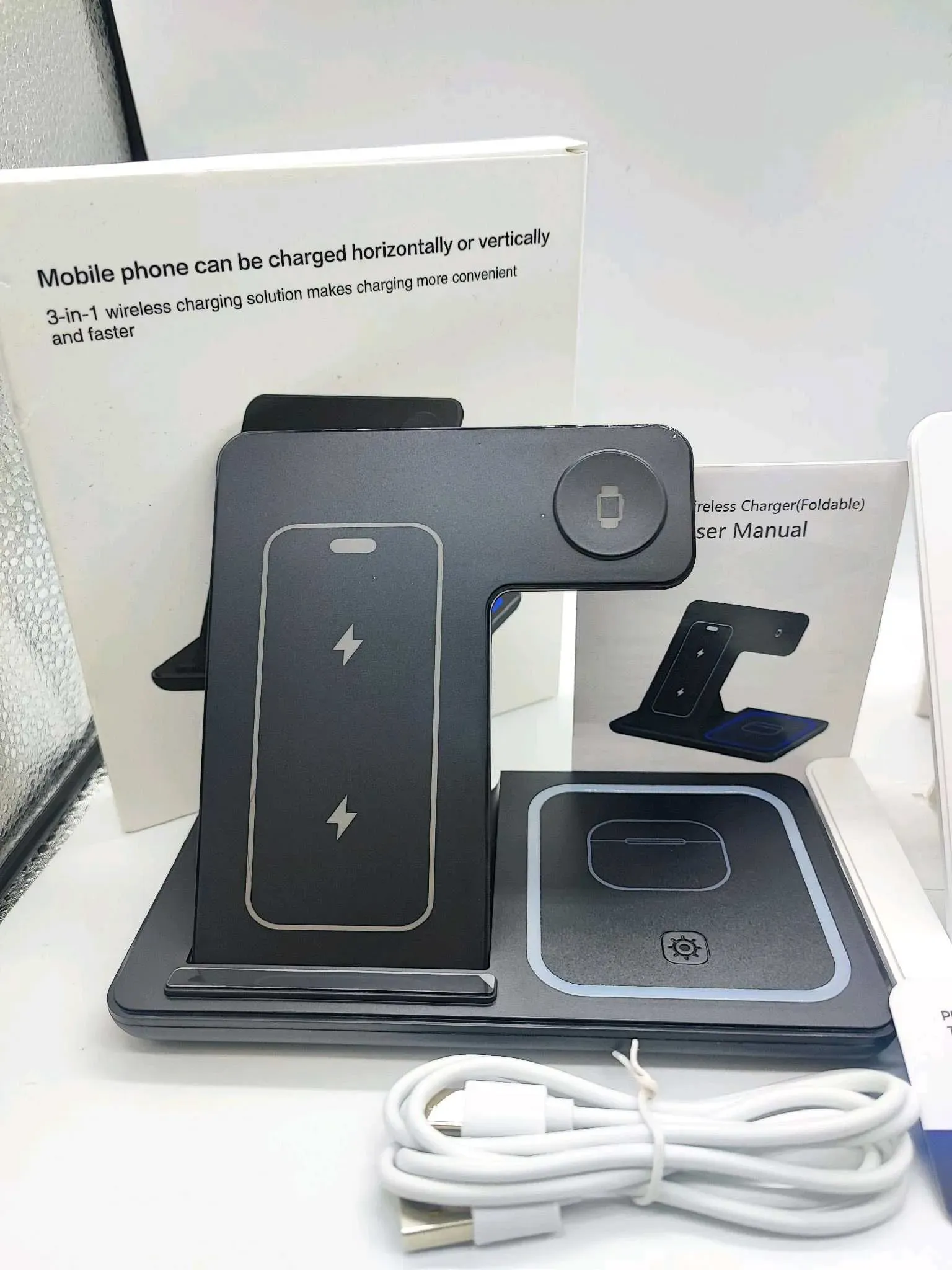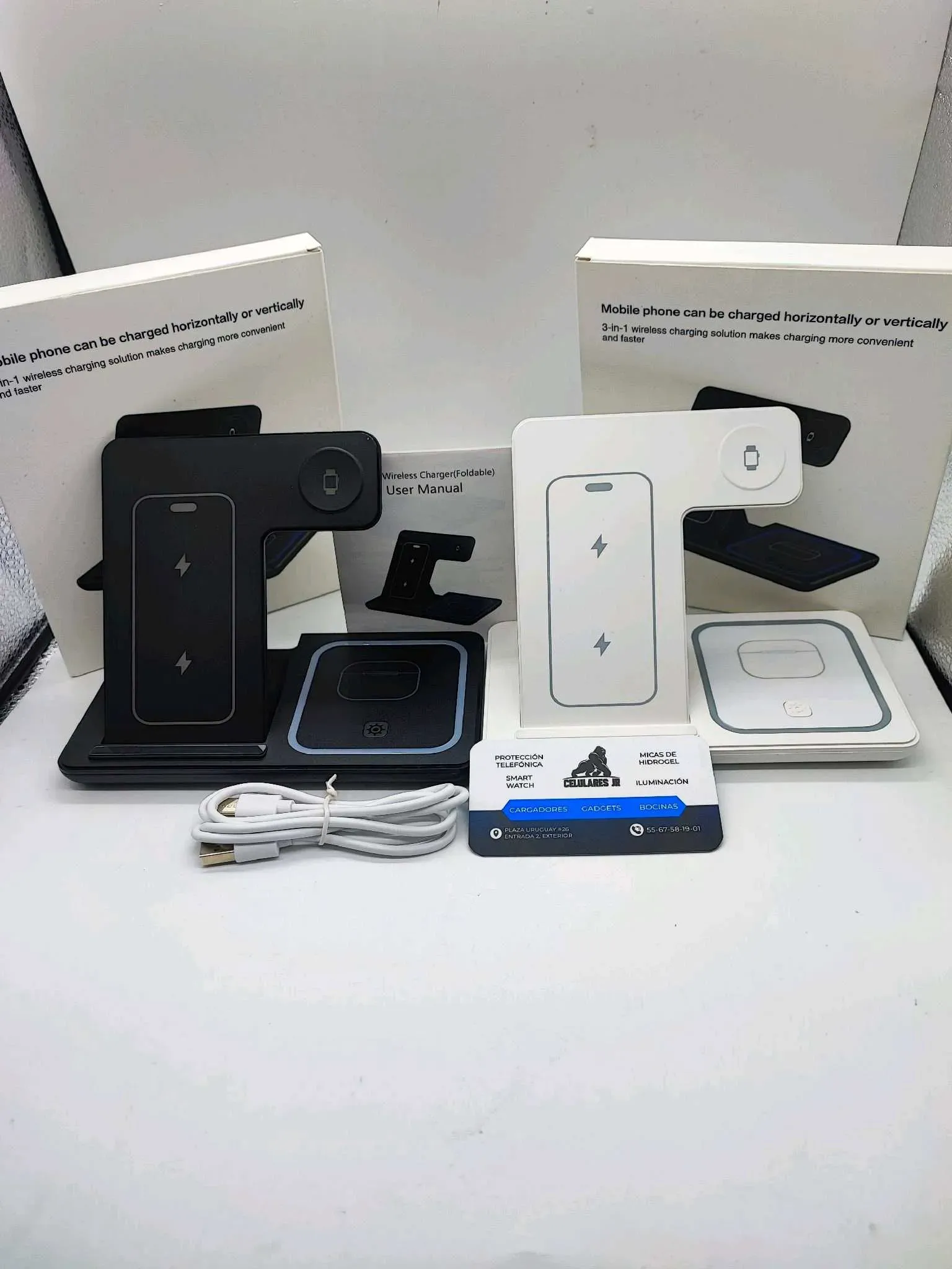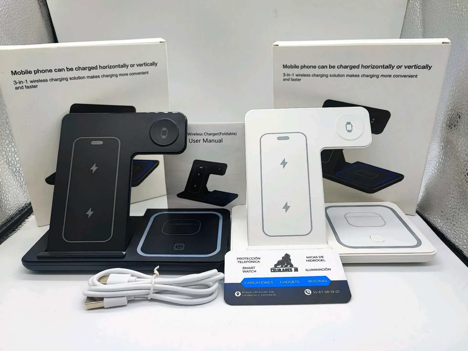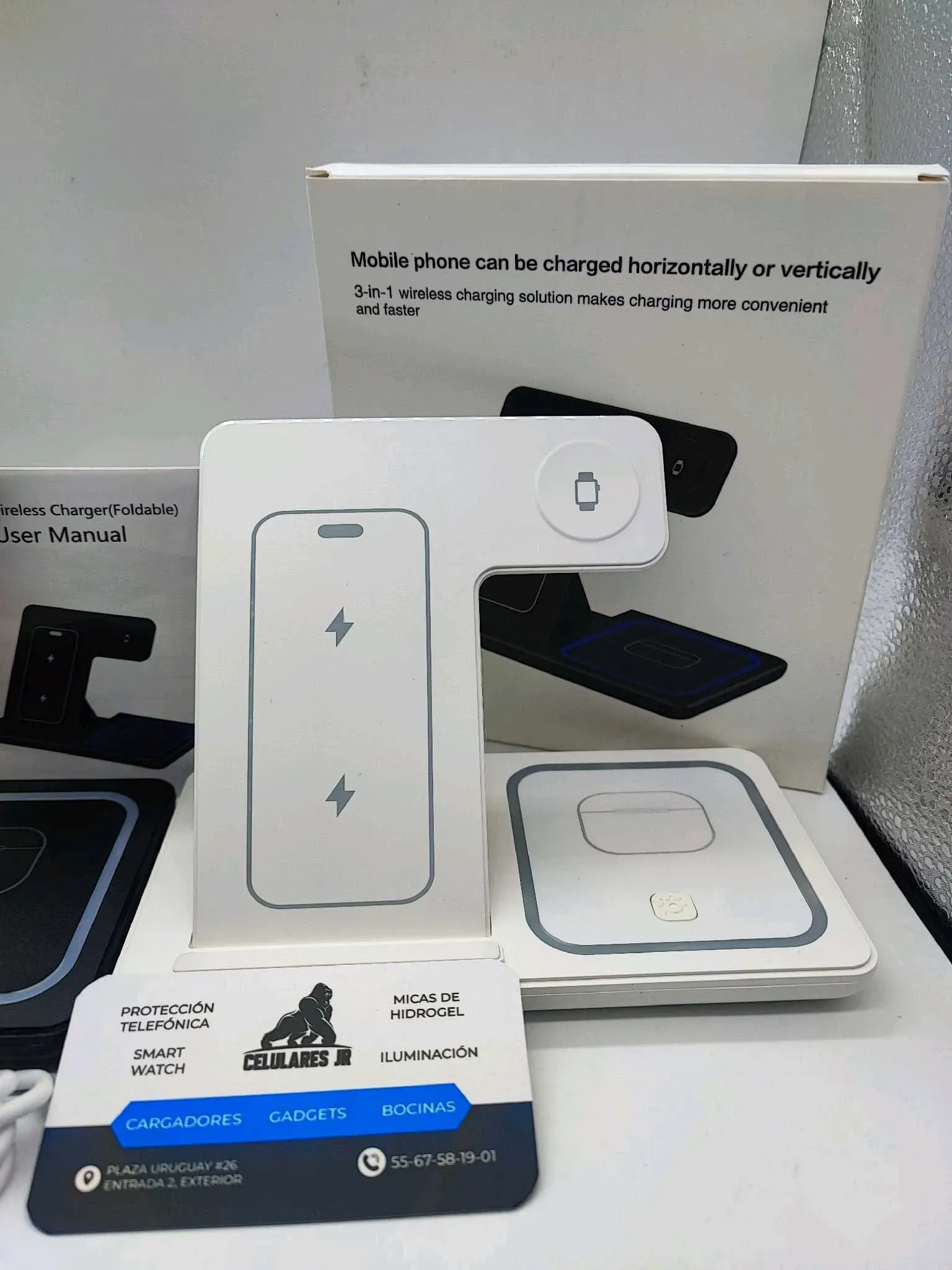 Cargador wireless 3 en 1 con base puedes recargar tu celular smartwatch y audífonos