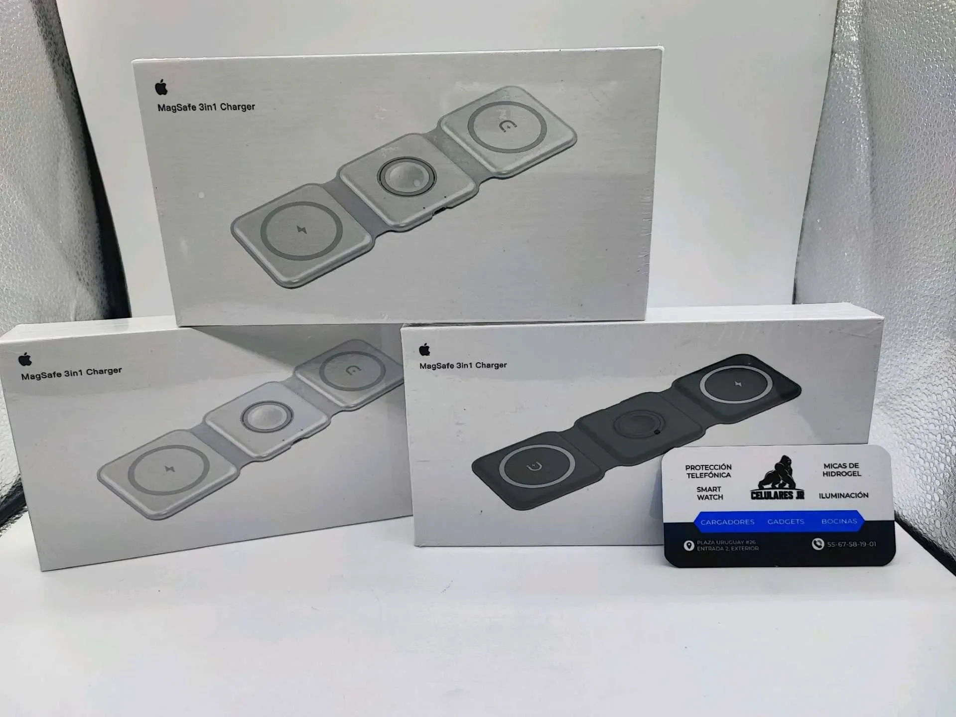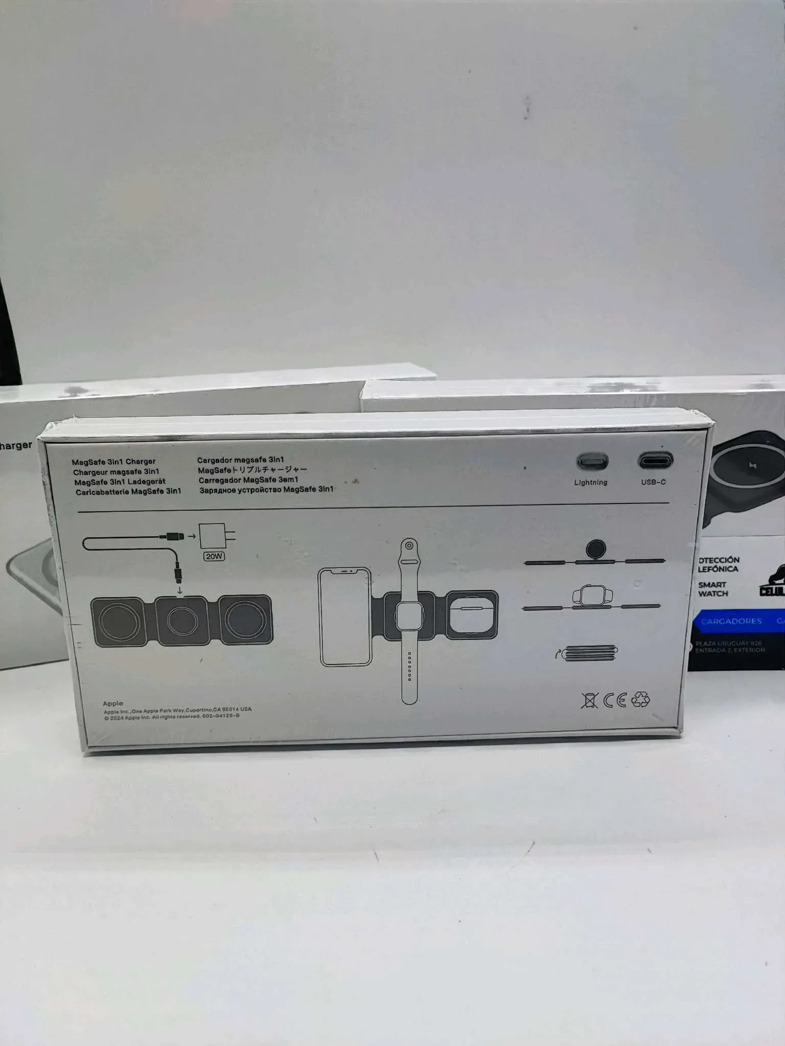 El MagSafe Charger 3 en 1 de Apple es el accesorio perfecto para cargar tu iPhone, Apple Watch y AirPods de forma rápida y segura. Con su diseño compacto y elegante, este cargador inalámbrico es ideal para mantener tus dispositivos siempre listos para usar.