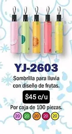 Protege-te de la lluvia con estilo y diversión con esta sombrilla con diseño de frutas. Con un diseño colorido y alegre, la Sombrilla de lluvia YJ-2603 es perfecta para añadir un toque de frescura a tus días lluviosos. ¡No dejes que la lluvia arruine tu día, lleva contigo esta sombrilla única!