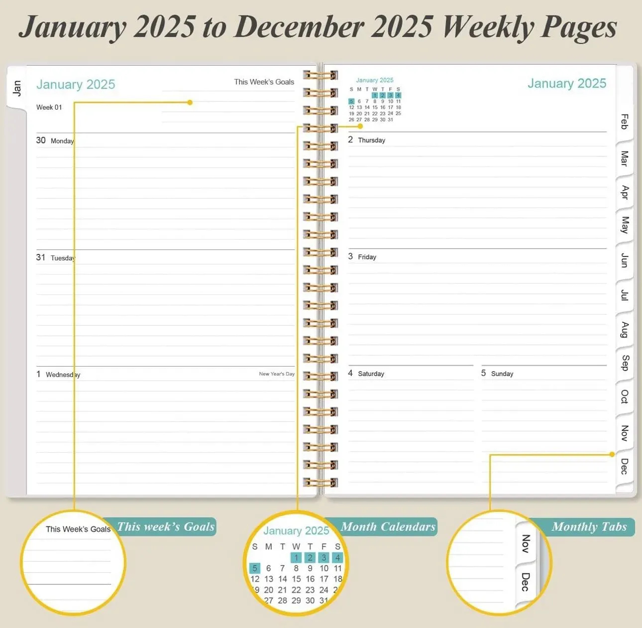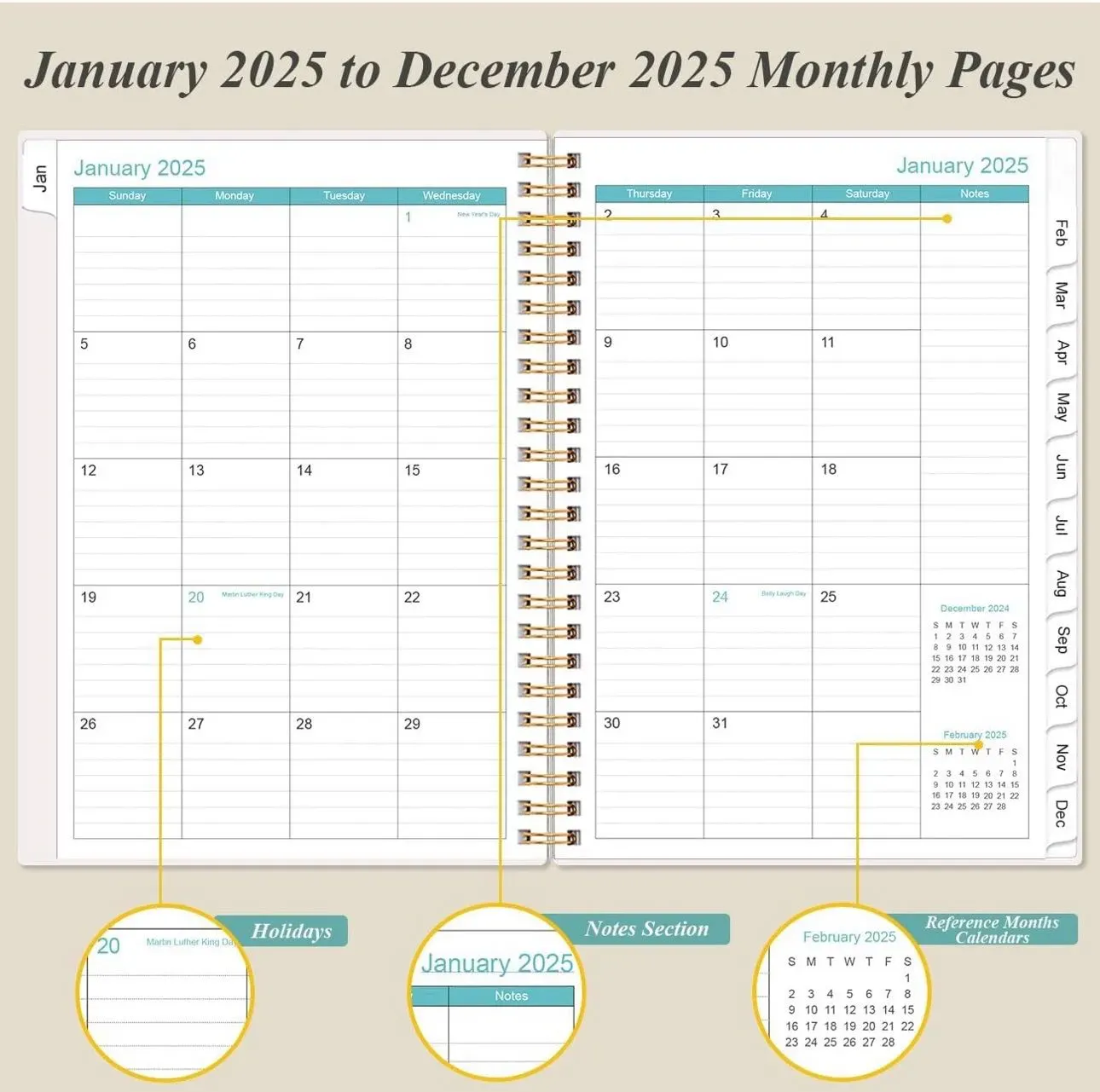 Agenda 2025: de enero de 2025 a diciembre de 2025, esta agenda 2025 cubre 12 meses de páginas semanales y mensuales, ideal para una fácil planificación y organización durante todo el año. El tamaño es de 6.4 x 8.5 pulgadas, adecuado para tu mochila o bolsa de trabajo.