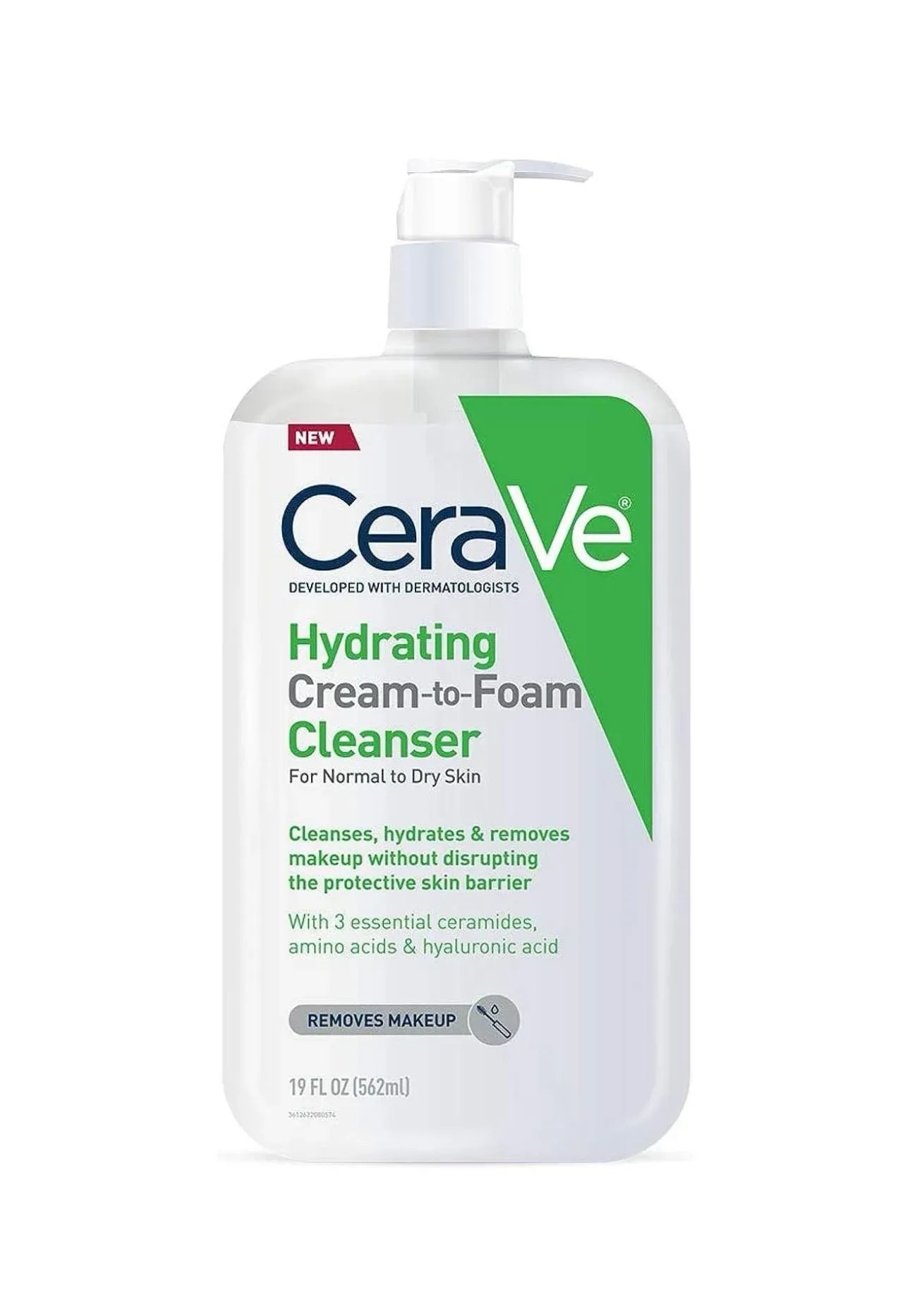 Desarrollado con dermatólogos, CeraVe Hydrating Cream-to-Foam Facial Cleanser tiene una fórmula de limpieza única de un solo paso con tres ceramidas esenciales (1, 3, 6-II) que limpia suavemente, elimina a fondo la grasa y el maquillaje, e hidrata la barrera de la piel. Este suave limpiador facial p...