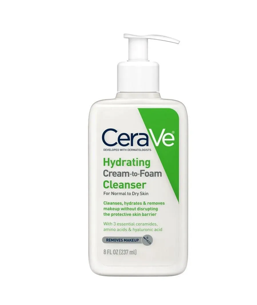 Desarrollado con dermatólogos, CeraVe Hidratante Crema-a-Espuma Limpiador comienza como una crema antes de transformarse en una espuma suave cuando comienza a espumar sobre la piel con agua. Este limpiador elimina eficazmente la suciedad y el maquillaje sin quitar la humedad natural de la piel o dej...