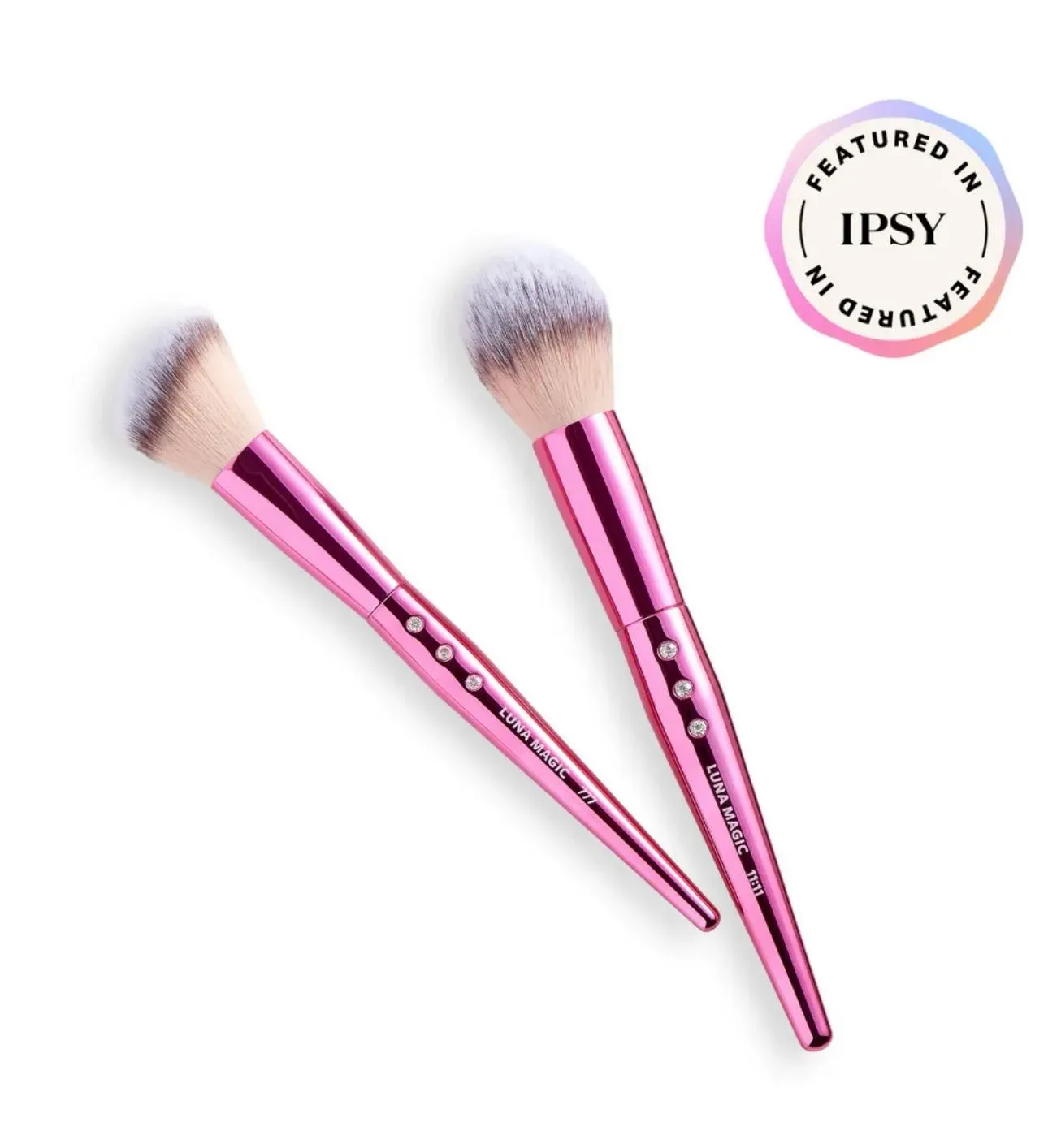 Para una configuración y definición facial impecables, use el juego de pinceles faciales Duo. Aplique colorete en un ángulo ascendente usando el icónico LUNA MAGIC Vibe Check: 777 Angle Brush para lograr pómulos levantados. Luego, use el LUNA MAGIC Left On Read: 11:11 Face Powder Brush para fijar pe...